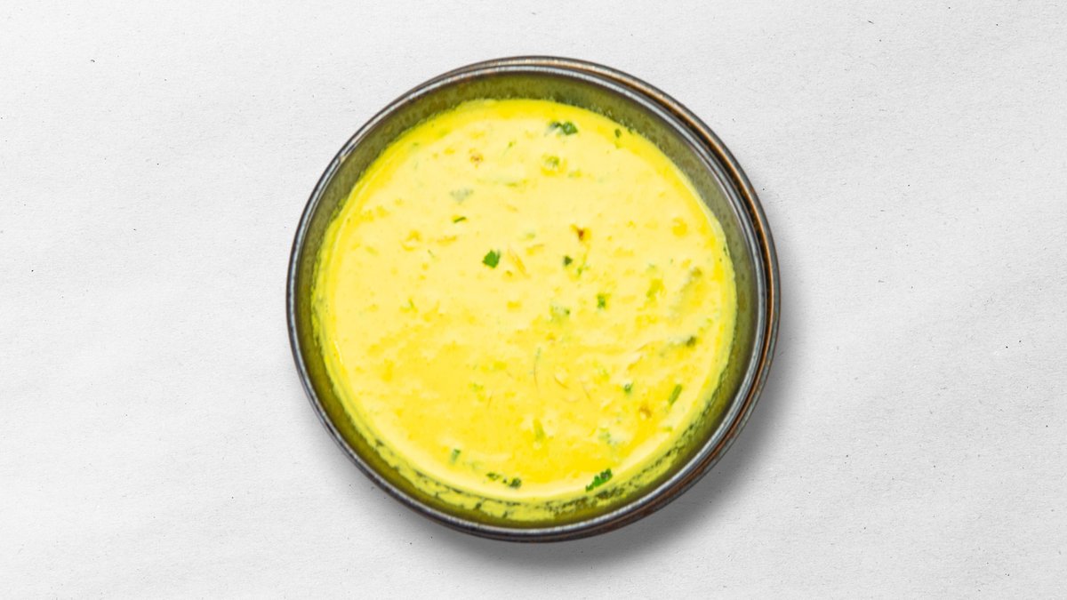 Kokosové mléko, kuřecí maso, vejce, smetana, koření galangal, skleněné nudle a cibule.