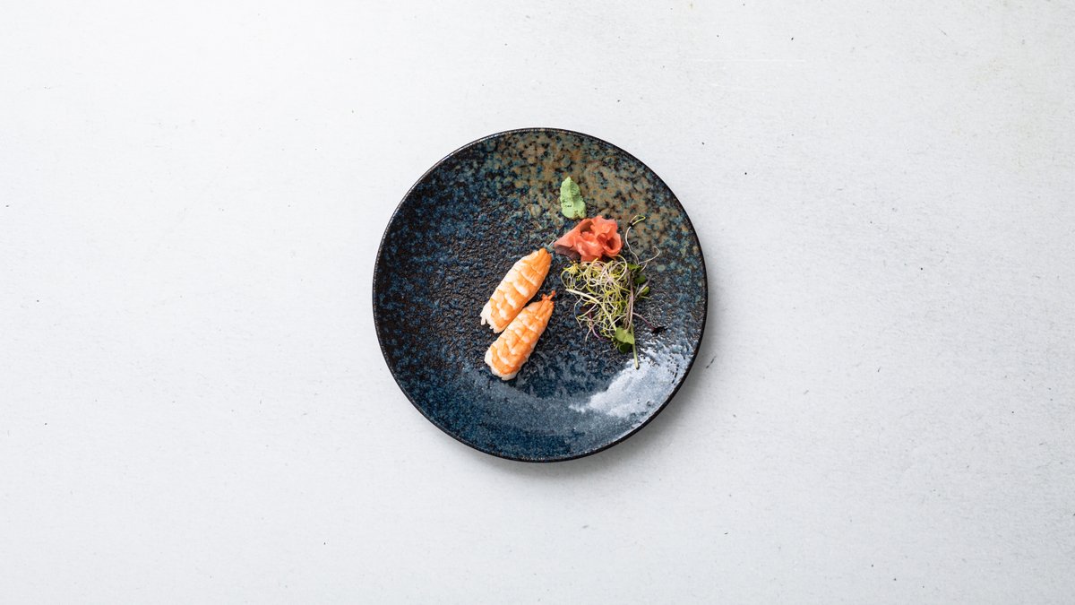 Vařená kreveta na ochucené sushi rýži, jemná a lahodná chuť.