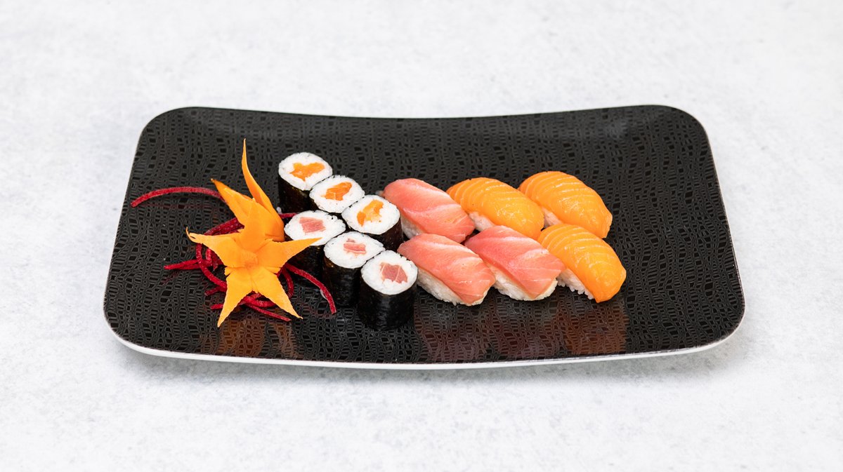 8ks maki losos, 8ks maki tuňák, 1ks nigiri losos a 1ks nigiri tuňák.