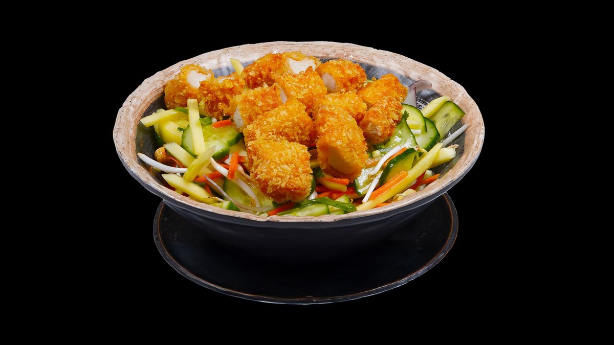 Ochutnejte naše nové vylepšení u tohoto oblíbeného salátu. Čekají na vás vařené krevety, krevety v tempuře či kuře v tempuře (mango, okurka, řapíkatý celer, červená cibule, mungo klíčky, cherry rajčata, arašídy, kešu oříšky, maso dle výběru a koriandr).