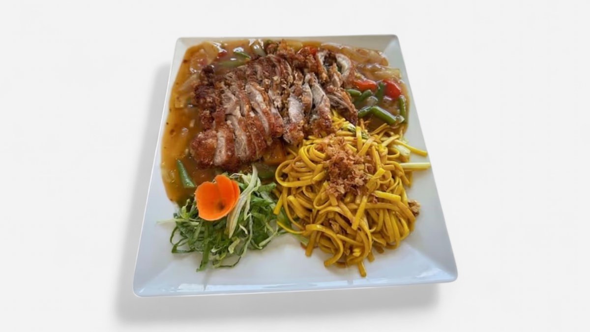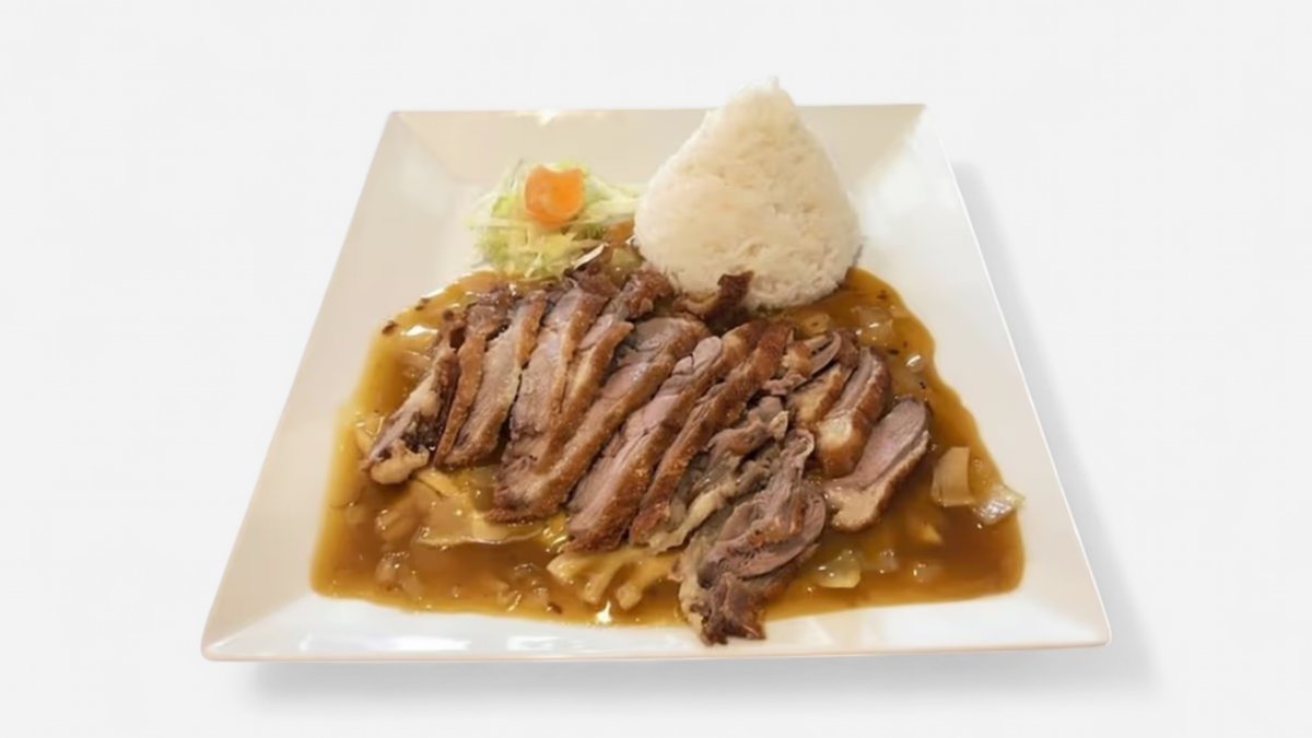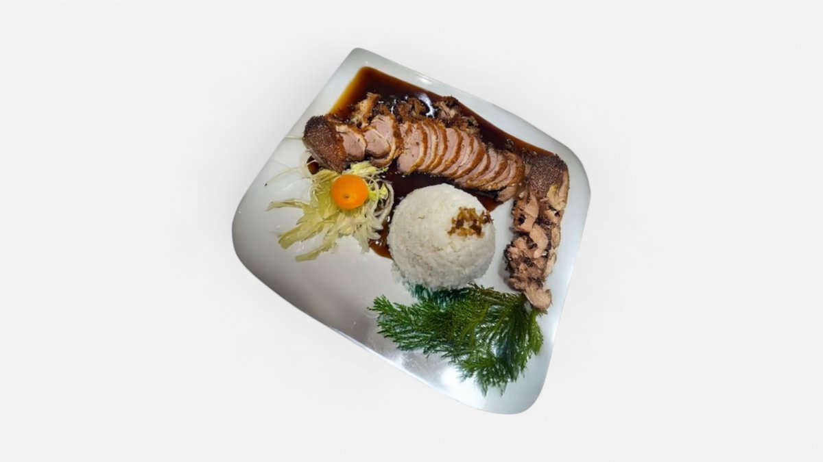 (11) Kachna v saté omáčce s bambusovými výhonky + rýže.