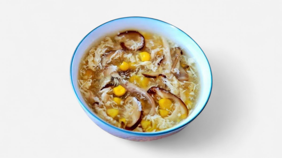 Pálivá krevetová polévka, rajčata, kopr, Jidášovo ucho, houby.