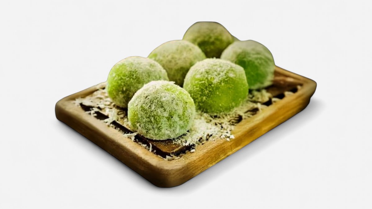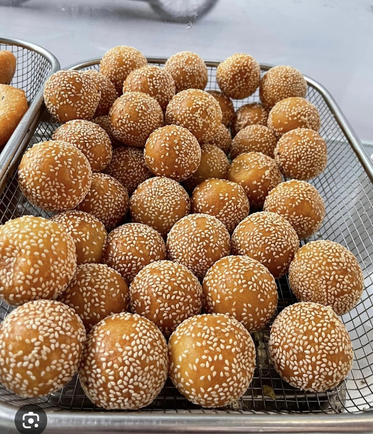 Smažený dezert z rýžového těsta plněný sladkou směsí fazolek a kokosu