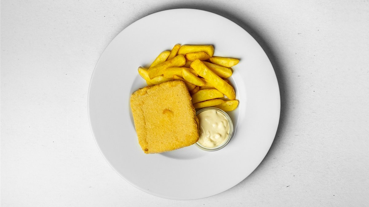 gouda, steakové hranolky, domácí tatarská omáčka