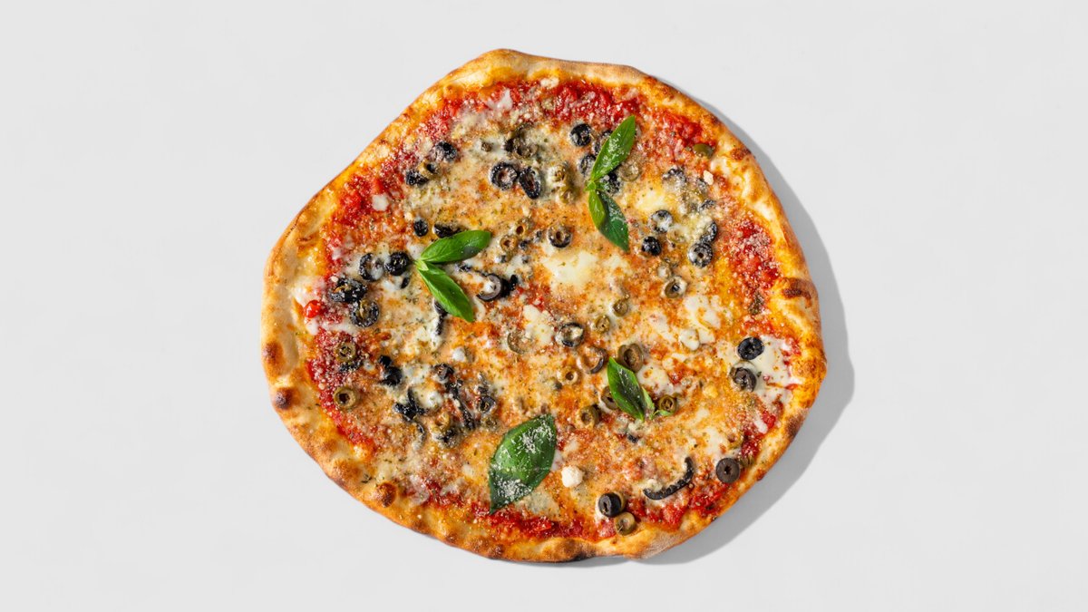 Rajčatové sugo, mozzarella, kukuřice, paprika mix, olivy