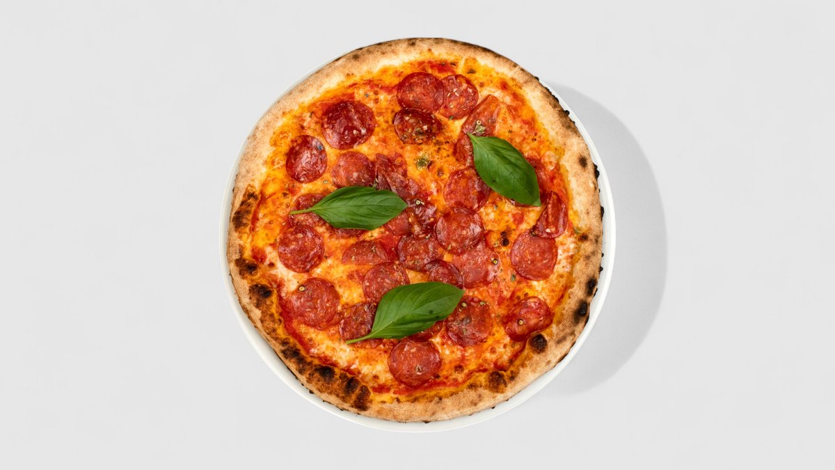 Rajčatové sugo, mozzarella, salám, chilli, kukuřice, feferonky