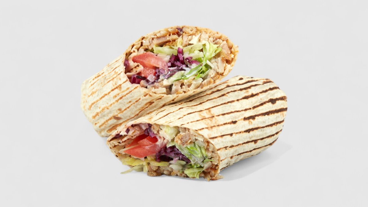 Hovězí maso, zelenina, salát, kyselá okurka, dresink, tortilla