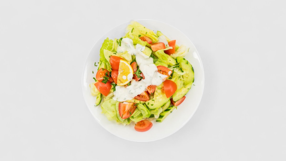 Hovězí maso, zelenina, salát, kyselá okurka, dresink