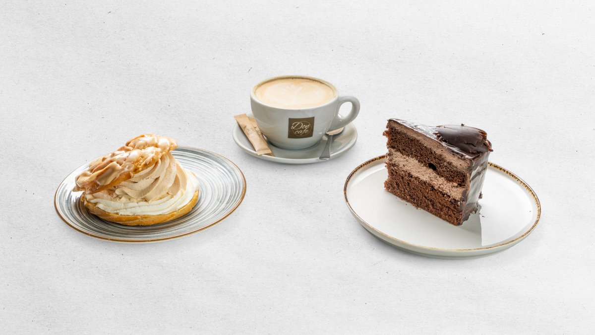 Dort dle výběru (čokoládový, ovocný, větrník) + káva dle výběru