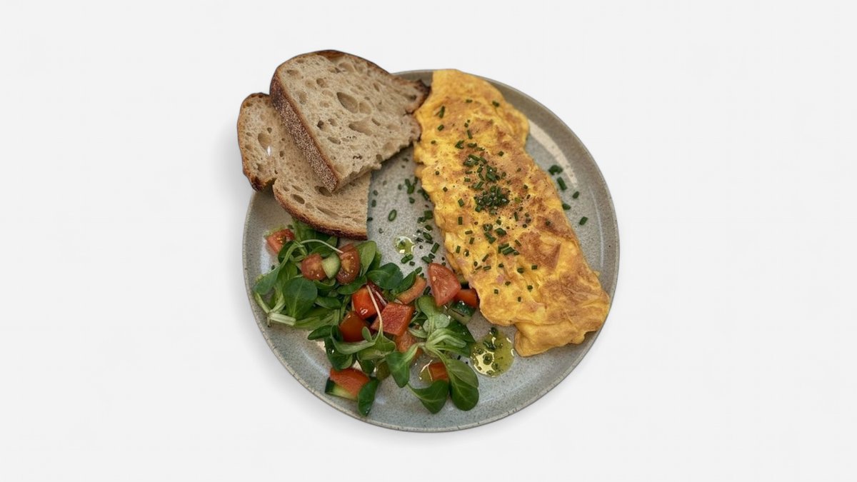 Omeleta, domácí chléb