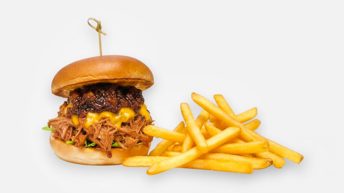 Trhaný vepřový a hranolky