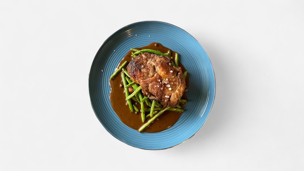 pepřová omáčka, bramborové krokety s česnekem, grilované fazolky a vypečená slanina A:1,3,7