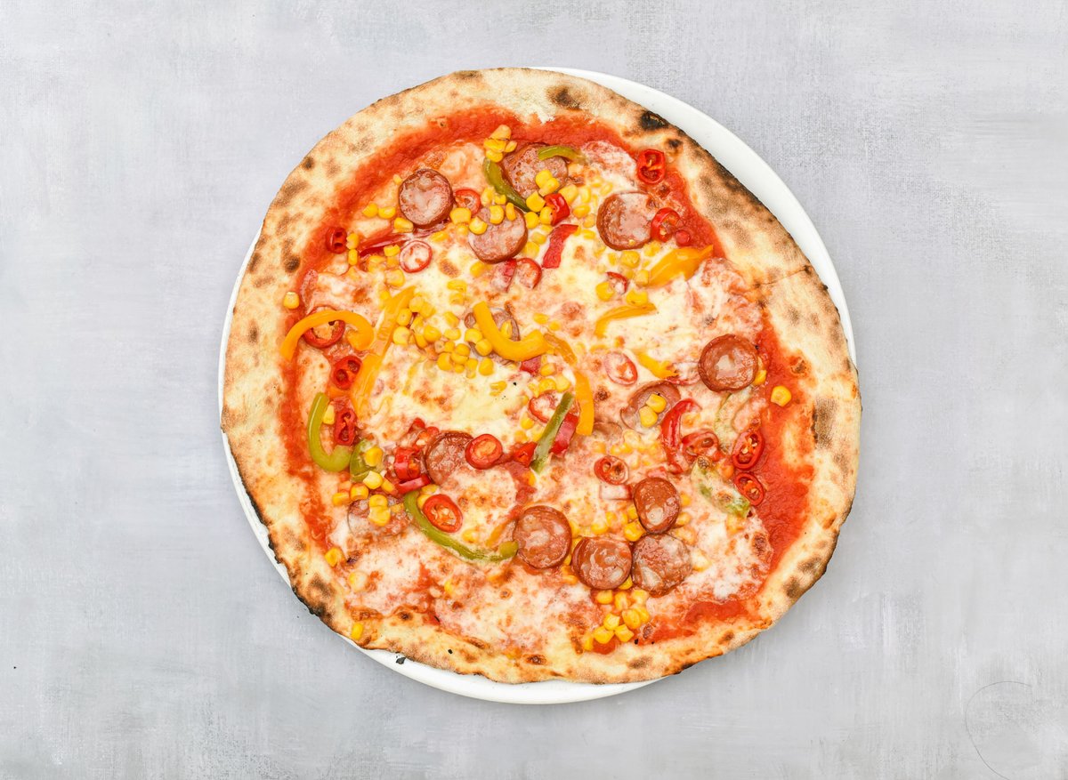 Pomodoro, mozzarella, paprika, kukuřice, feferonky (1.7)