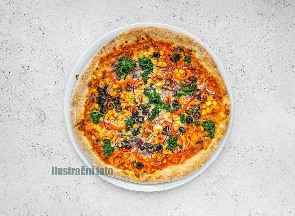 pomodoro, mozzarella, špenát, kukuřice, šunka (1,7)