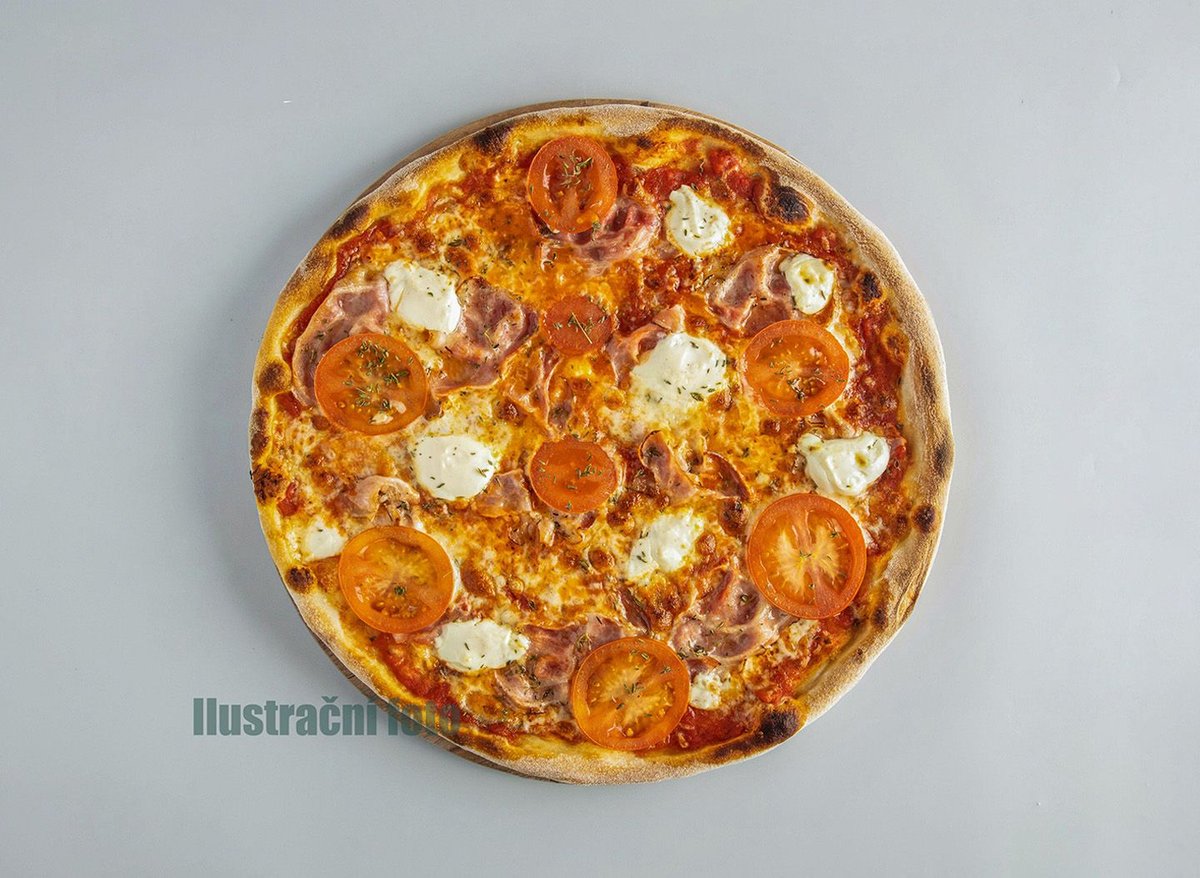 Pomodoro, mozzarella, slanina, sýr, cherry rajčátky (1.7)