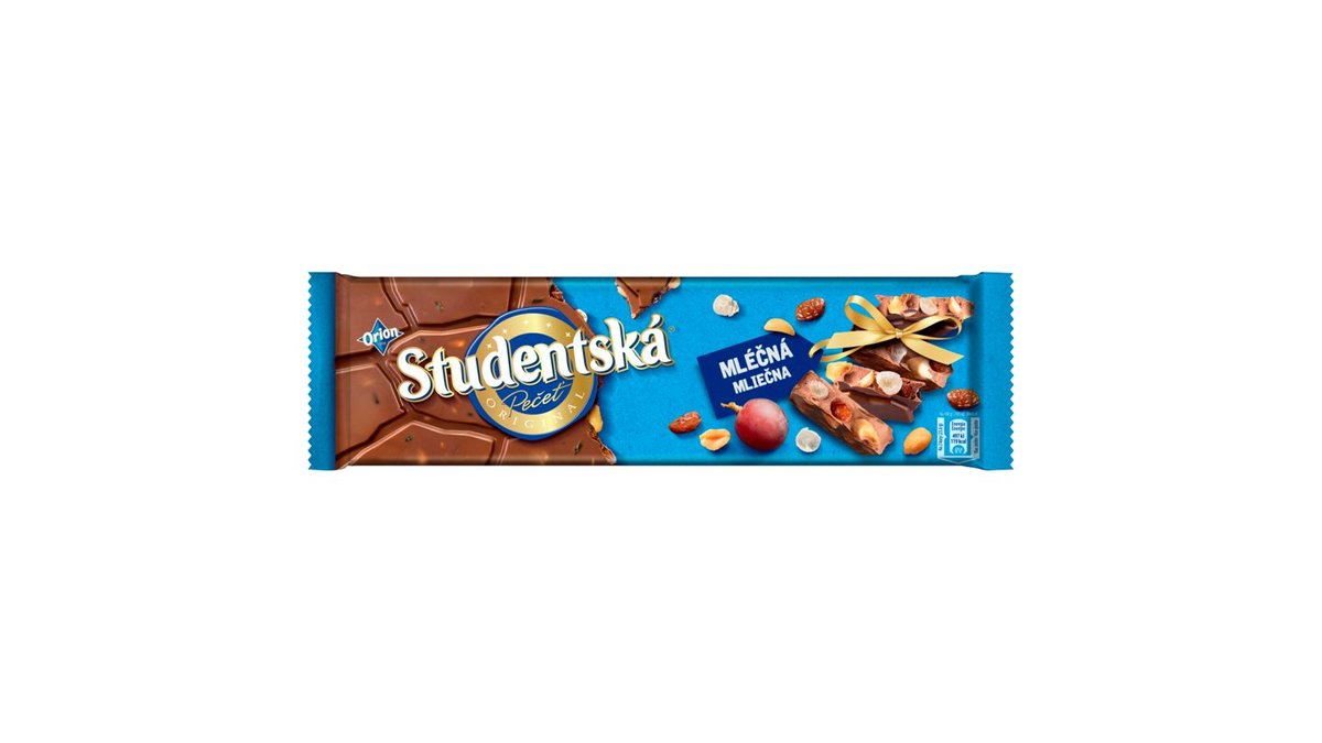 104,90 KčORION STUDENTSKÁ PEČEŤ mléčná čokoláda s arašídy, želé a kousky s chutí malin 170g
