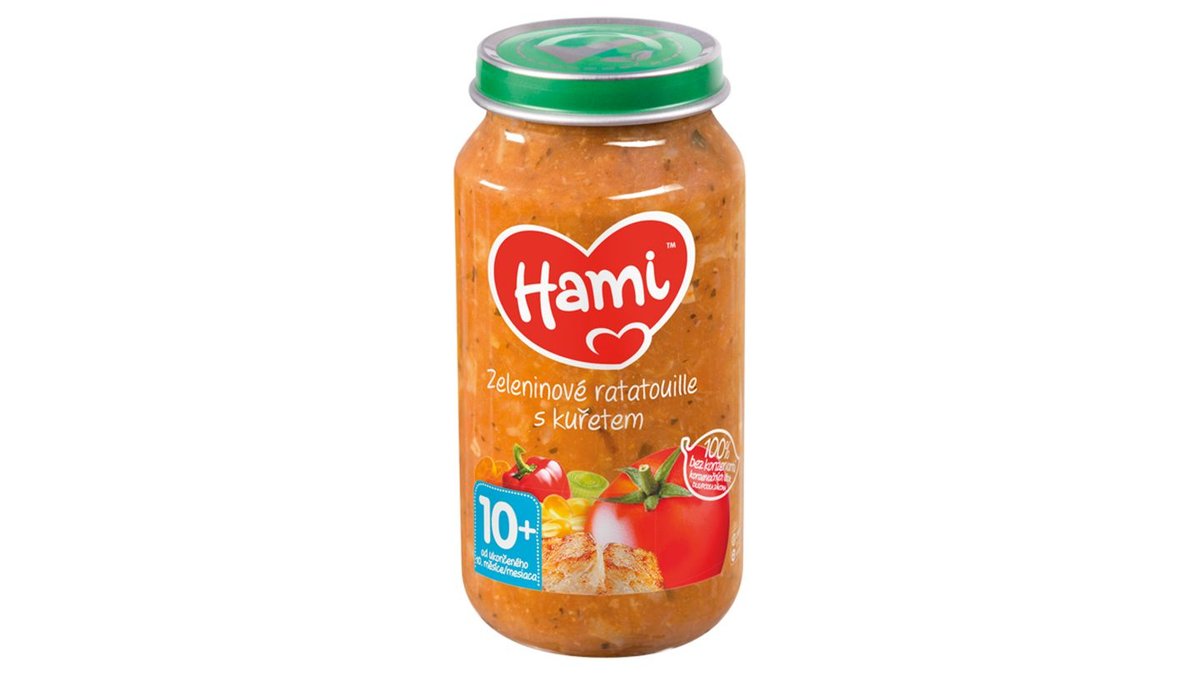 52,90 KčHami Zeleninové ratatouille s kuřetem masozeleninový příkrm od ukončeného 10. měsíce 250g
