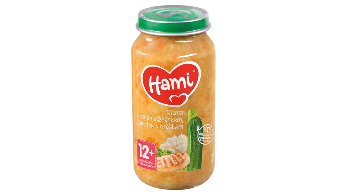 52,90 KčHami masozeleninový příkrm Rizoto s krůtím stehýnkem, cuketou a hráškem od uk. 12. měsíce 250g