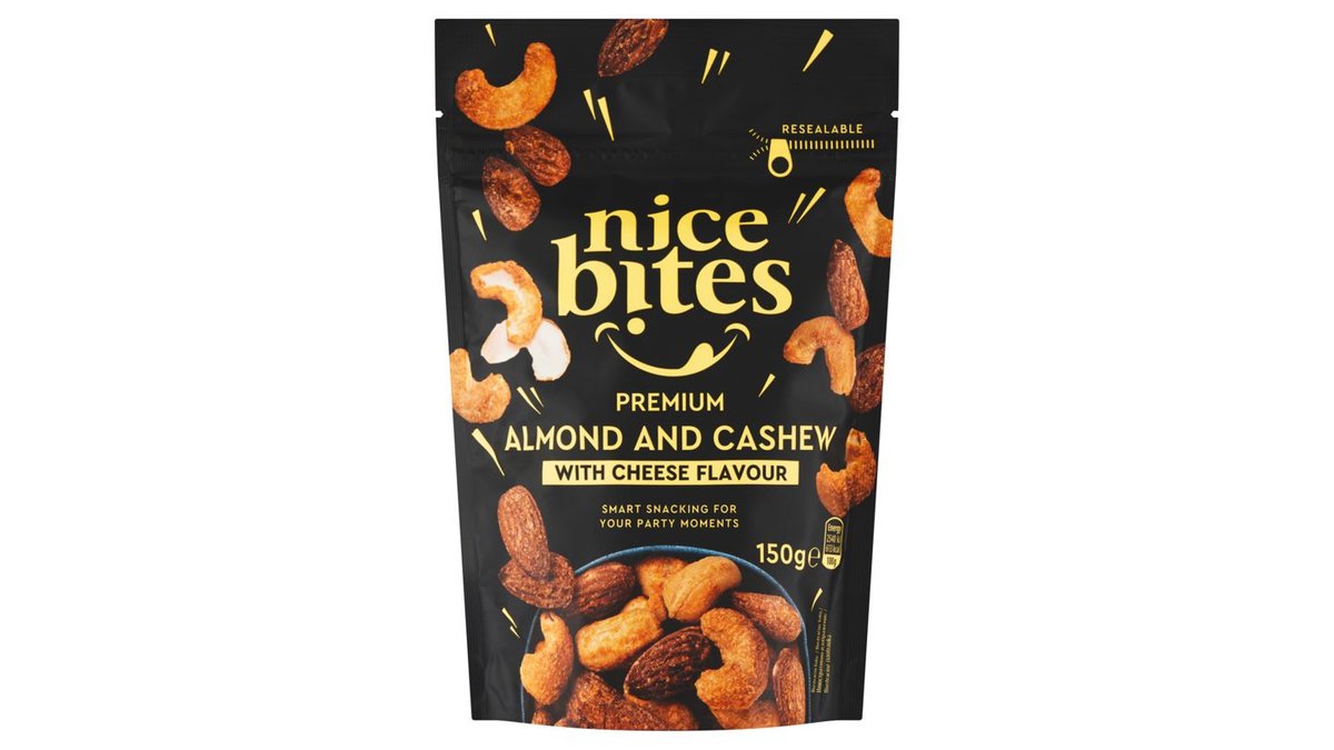 89,90 KčNice Bites Pražená jádra mandlí a kešu ořechů se sýrovou příchutí 150g