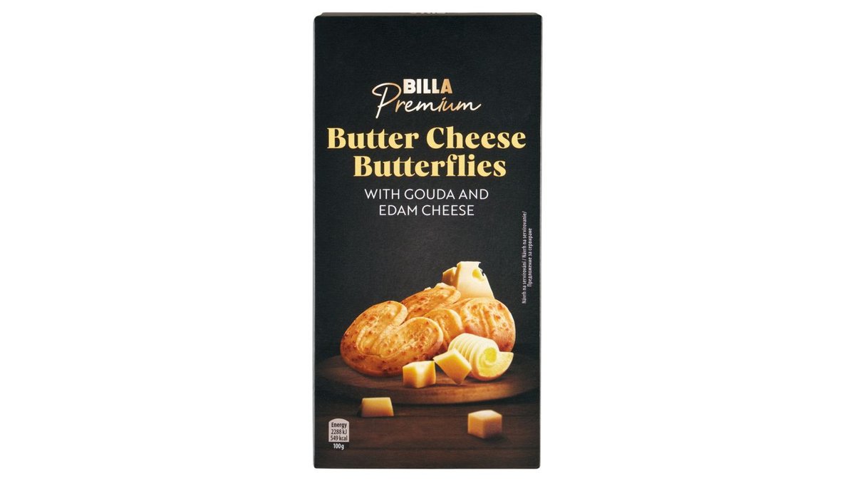 BILLA Premium Máslové krekry ve tvaru motýlků 100g