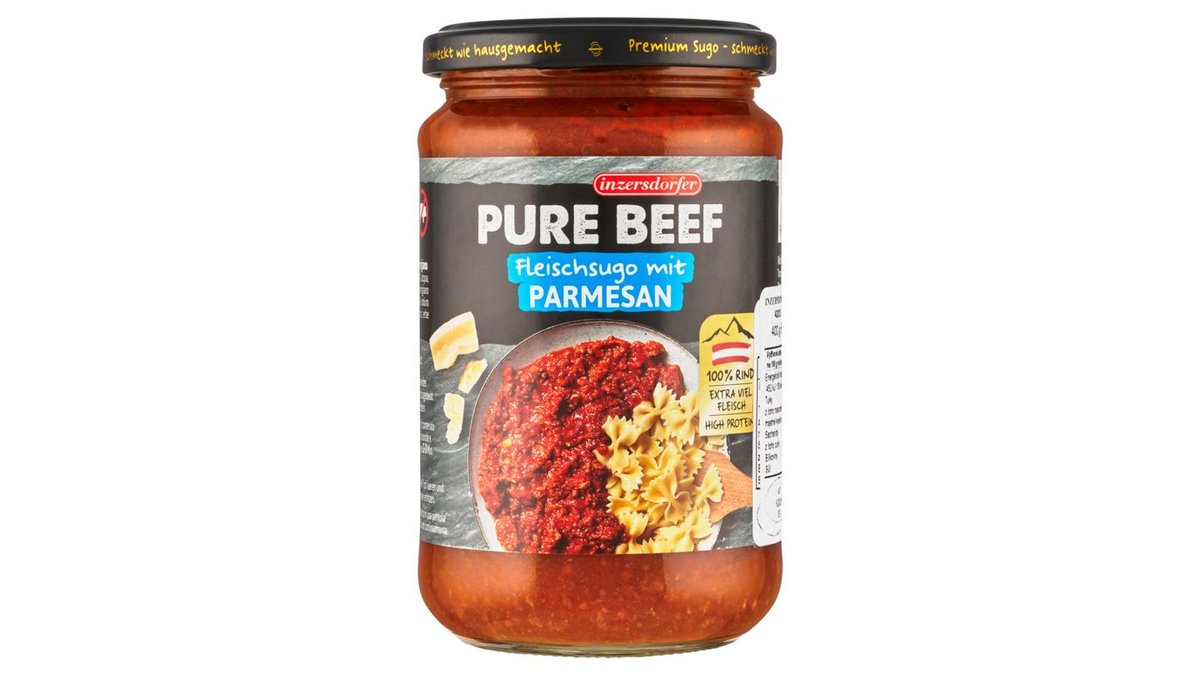 inzersdorfer Pure Beef Rajčatová omáčka s hovězím masem a parmezánem 400g