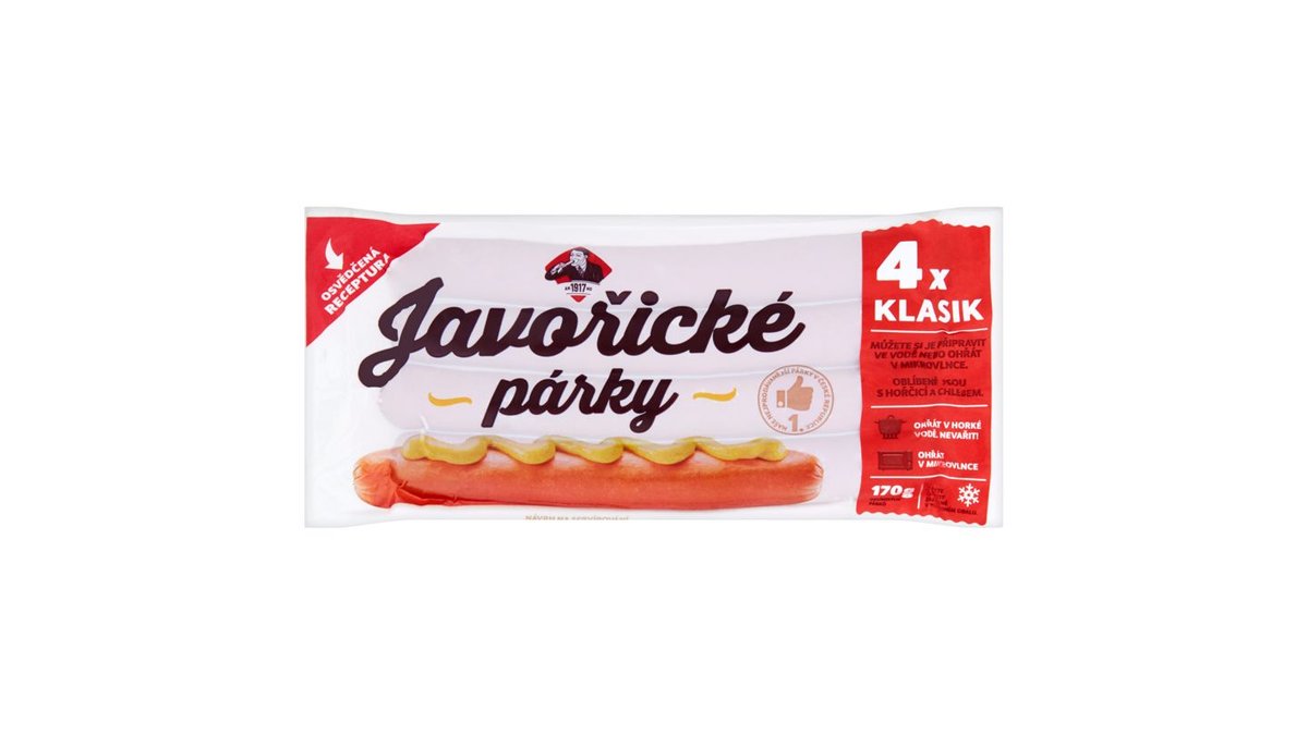 Kostelecké Uzeniny Javořické párky klasik 4 ks 0,170kg