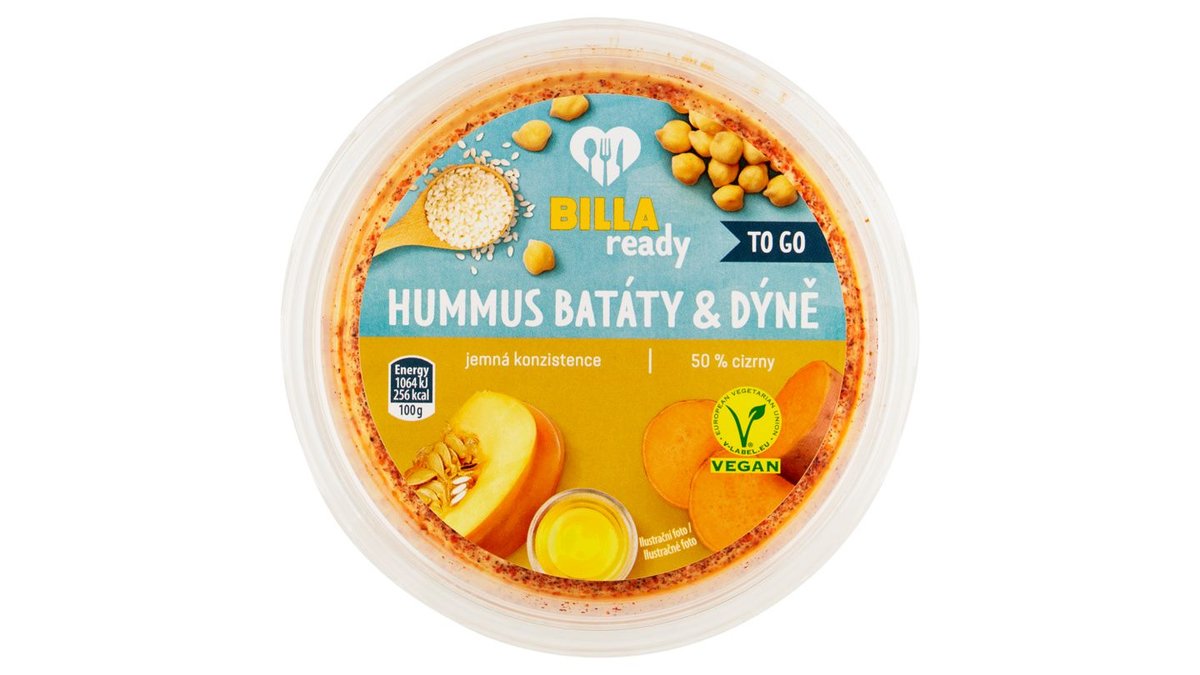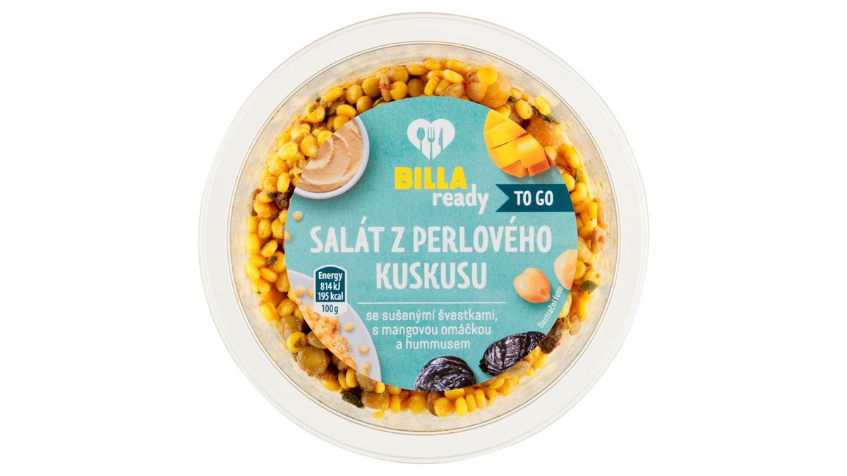 BILLA Ready Salát z perlového kuskusu se sušenými švestkami, s mangovou omáčkou a hummusem 180g