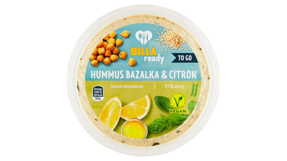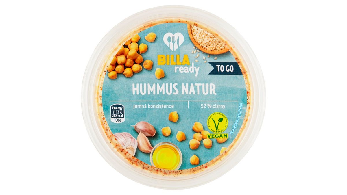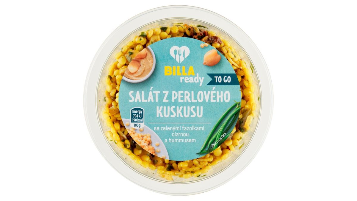 BILLA Ready Salát z perlového kuskusu se zelenými fazolkami, cizrnou a hummusem 180g