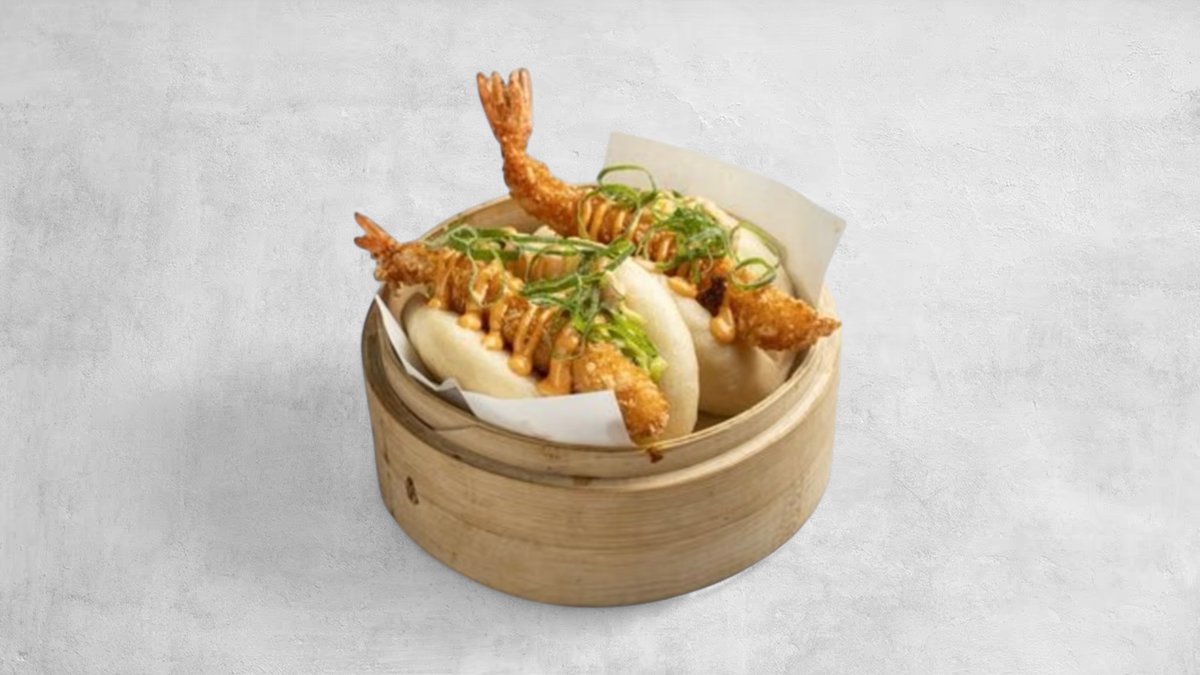2stk. Bao med fyld friteret kylling, agurk, chilimayo og sesam.