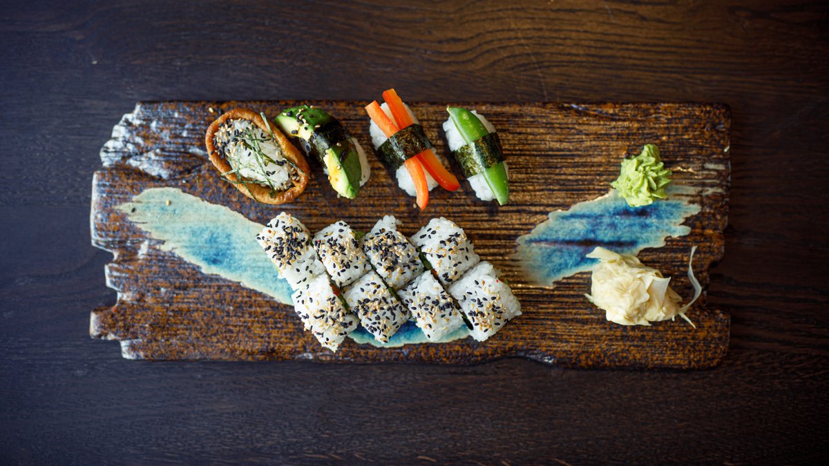 Nigiri: 2 x Avocado 2 x Tofu Uramaki: 8 x Vegetar Lover Hosomaki: 8 x Agurk