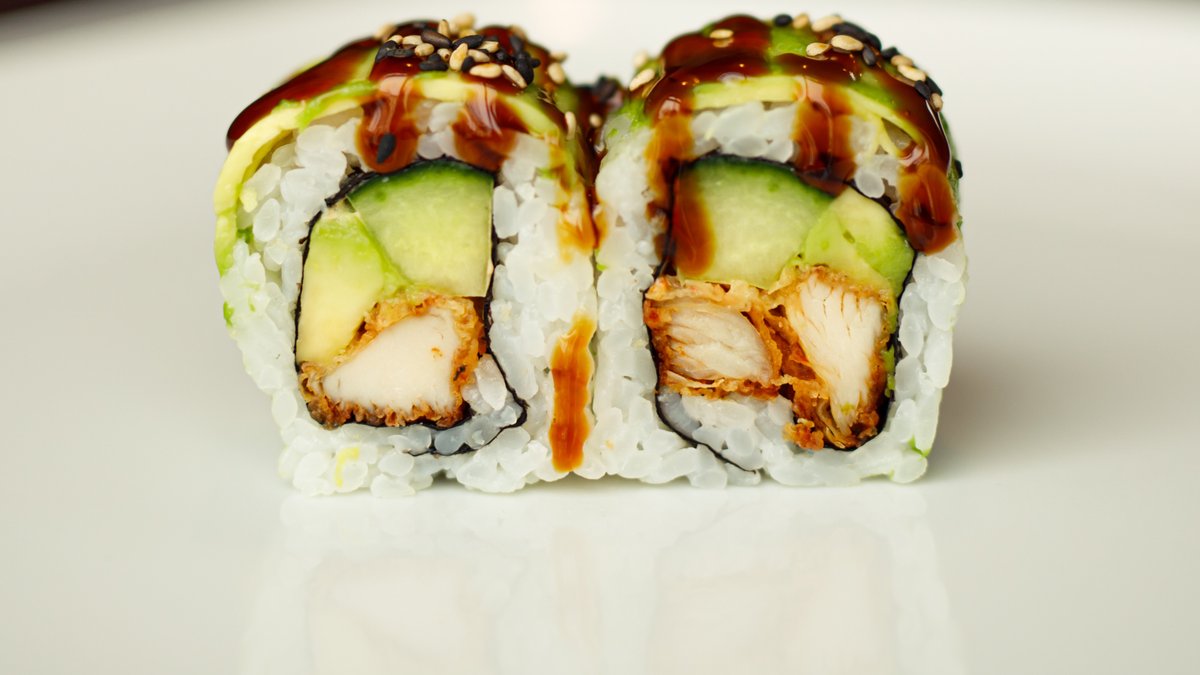 Tempurarejer, avocado, agurk, chilimayo og chilisesam.