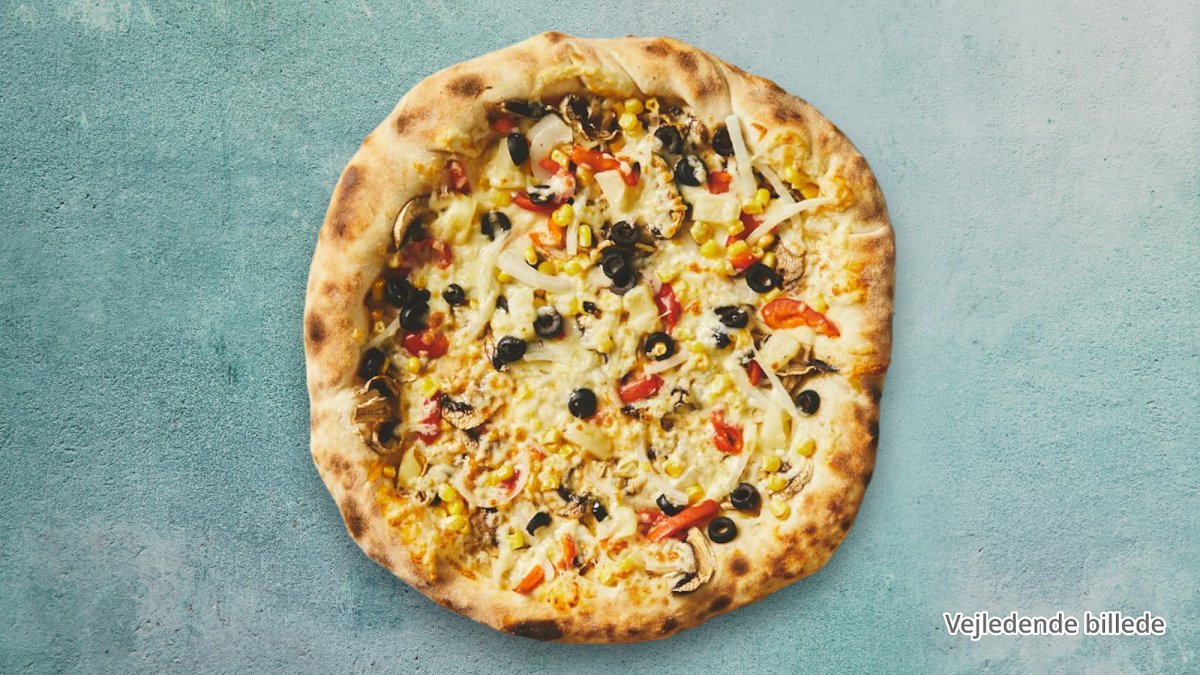Tomatsauce, ost, 4 valgfrie toppings og oregano..