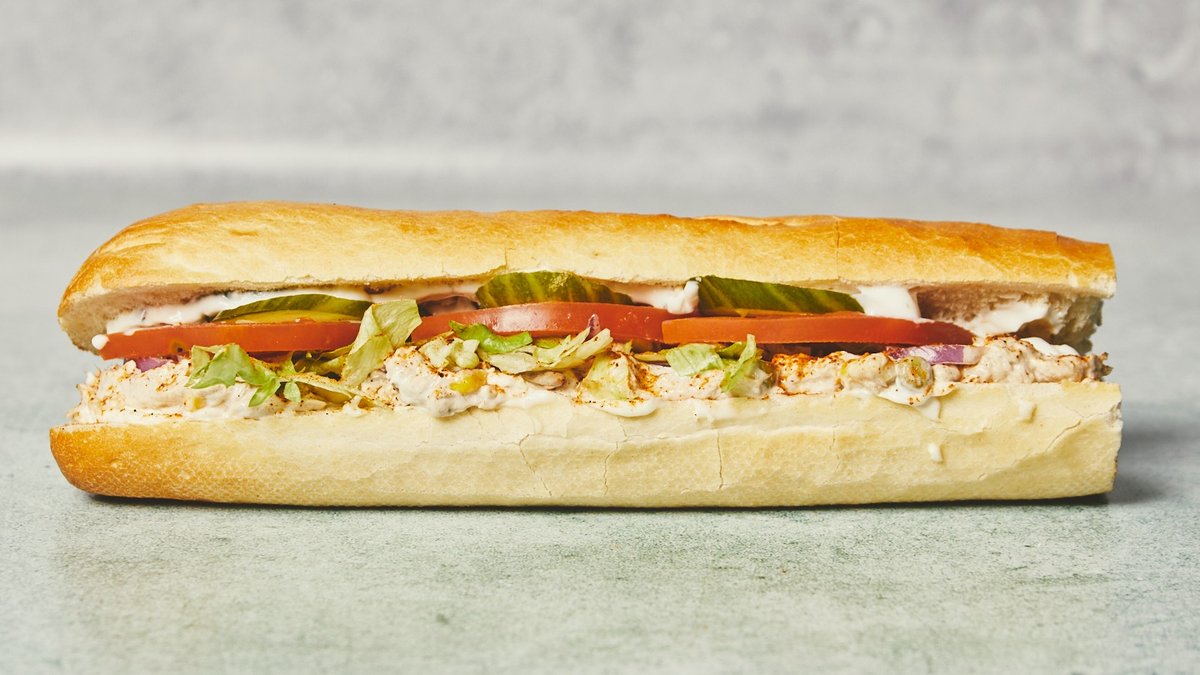 Sandwich med valgfrit brød, kylling, ost, frisk icebergsalat, tomat, agurk. rødløg og krydderiblanding, samt valgfri dressing.