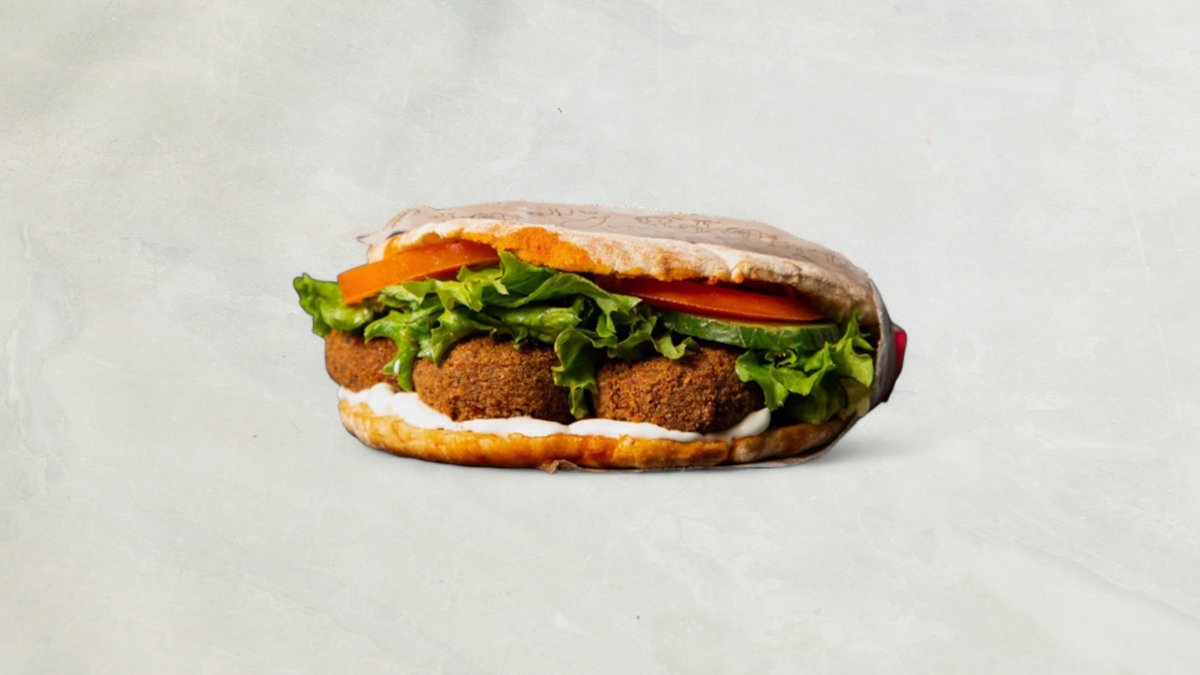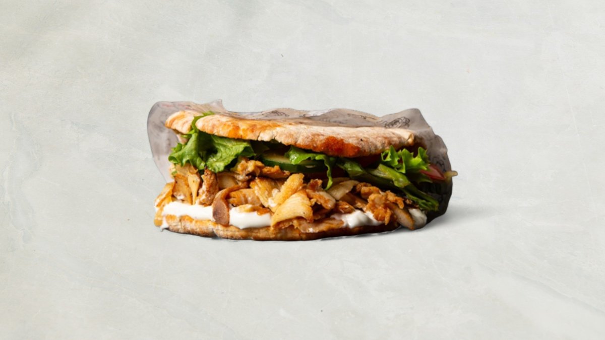 Valgfri pitabrød. Serveres med pommes frites og valgfri sodavand.