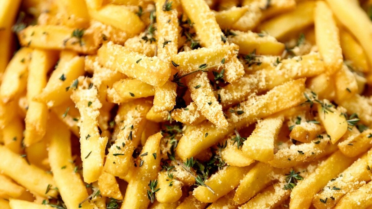 Serveres med pommes frites og én valgfri 0,33 l sodavand.