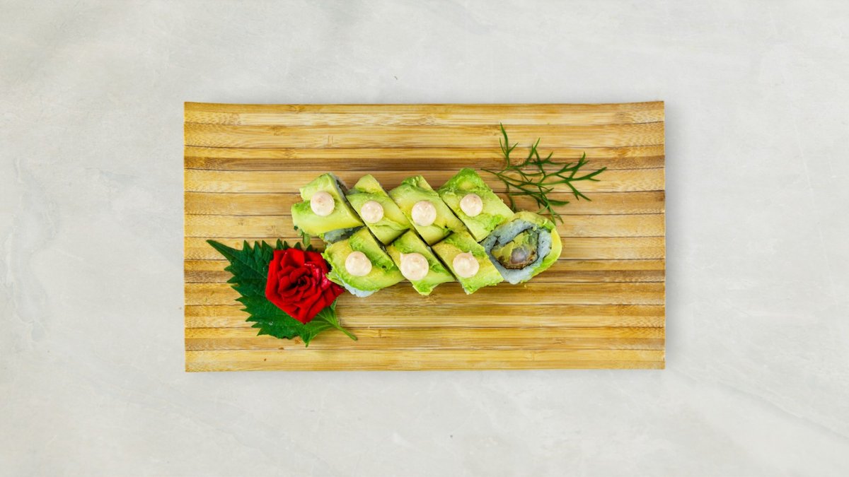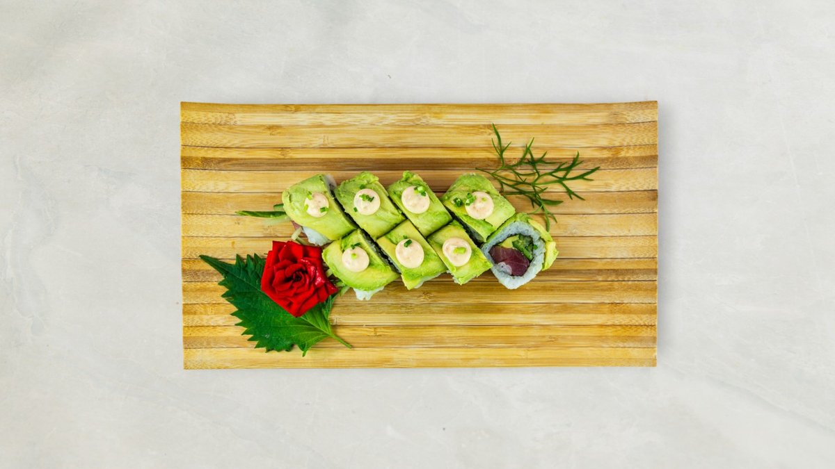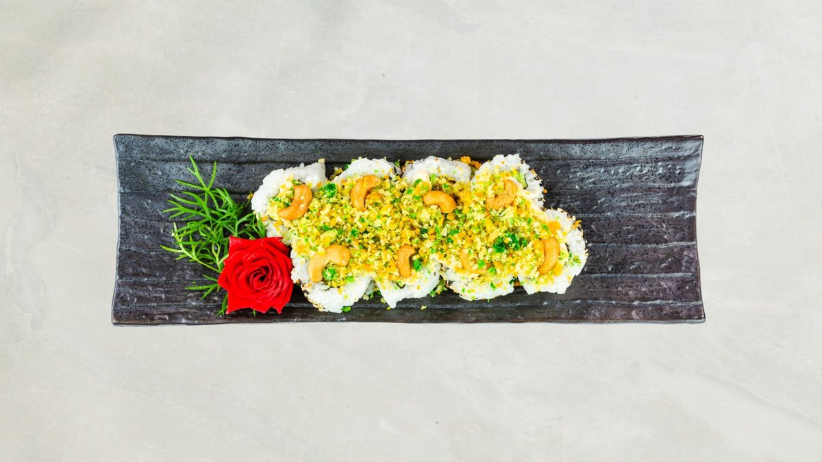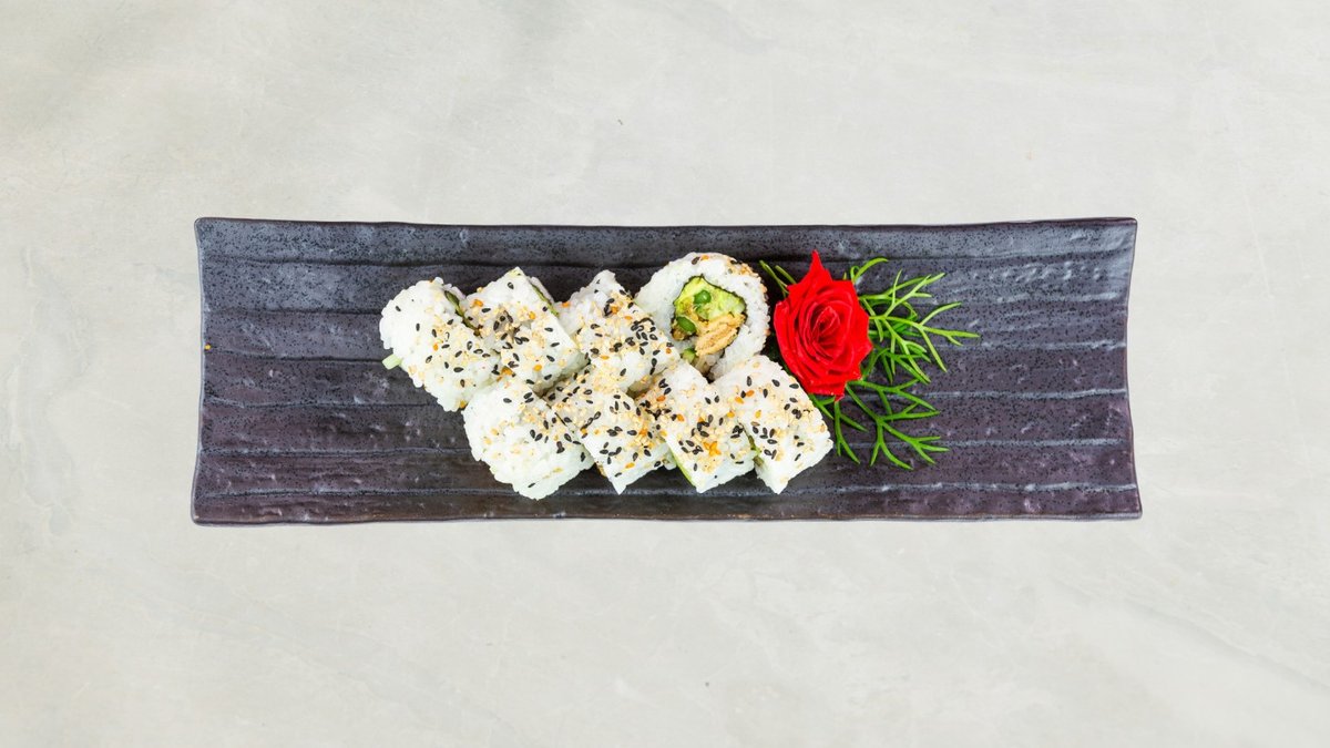 Uramaki: 8 stk Kakiyaki Kaburimaki: 8 stk veggie dragon Nigiri: 2 stk mango, 2 stk asparges, og 2 stk tofu. Serveres med tangsalat og tempura grønsager.