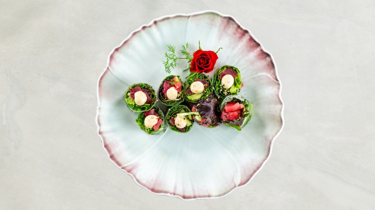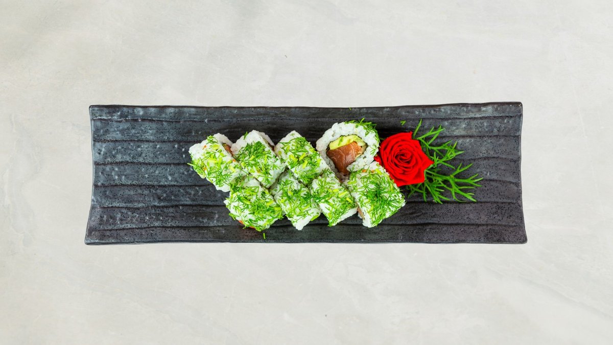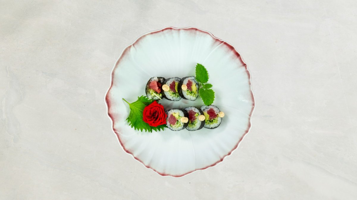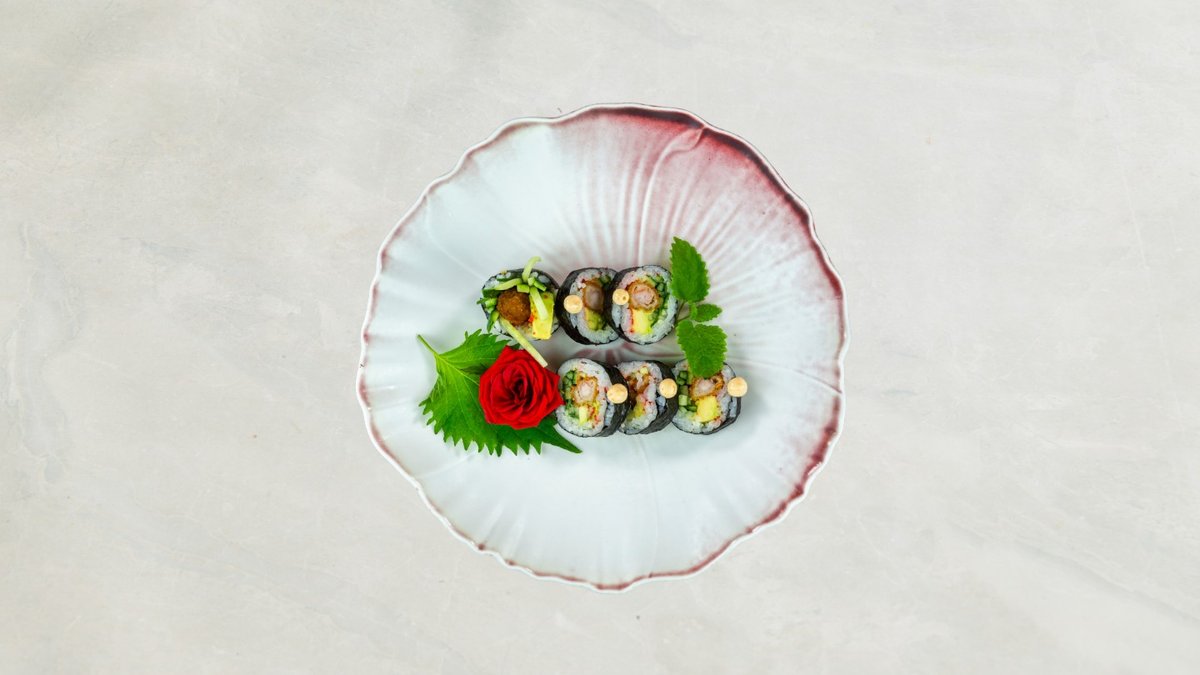 Uramaki: 8 stk Kakiyaki Kaburimaki: 8 stk veggie dragon Nigiri: 2 stk mango, 2 stk asparges, og 2 stk tofu. Serveres med tangsalat og tempura grønsager.