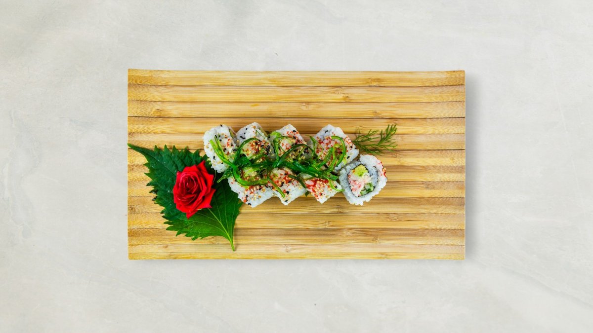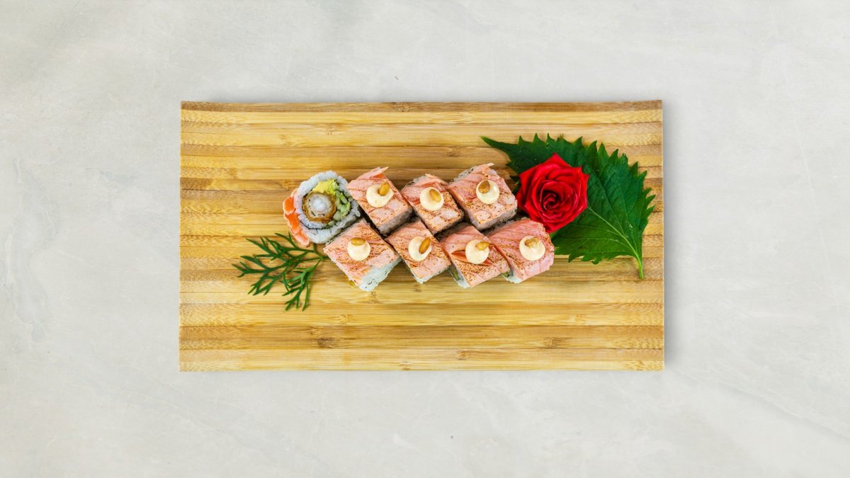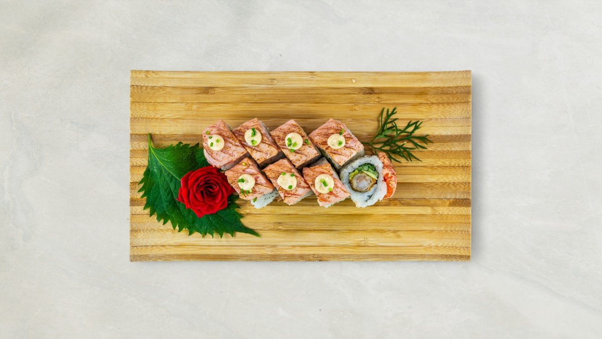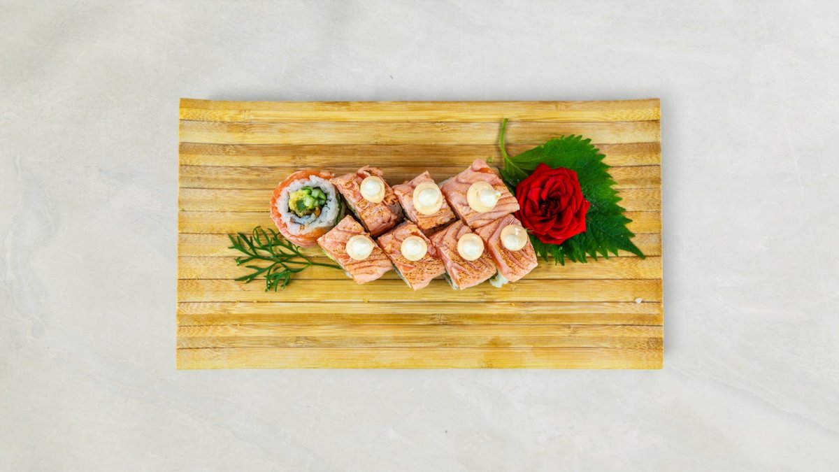 Futomaki: 6 stk Mango laks Nigiri: 2 stk Laks avocado Kaburimaki: 8 stk California dragon