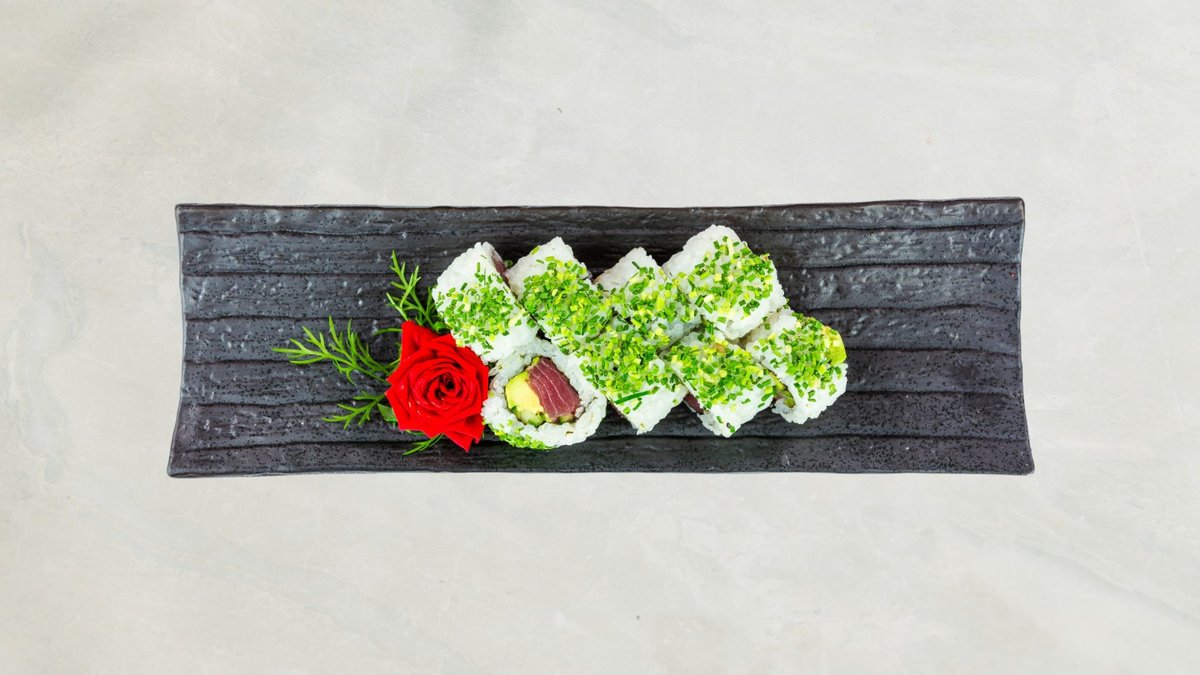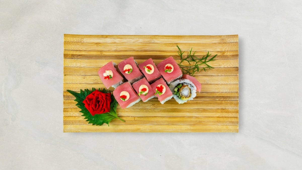 Uramaki: 8 stk Crispy shrimp og 8 stk alaska Kaburimaki: 8 stk green dragon Nigiri: 2 stk laks, 2 stk rejer og 2 stk tun