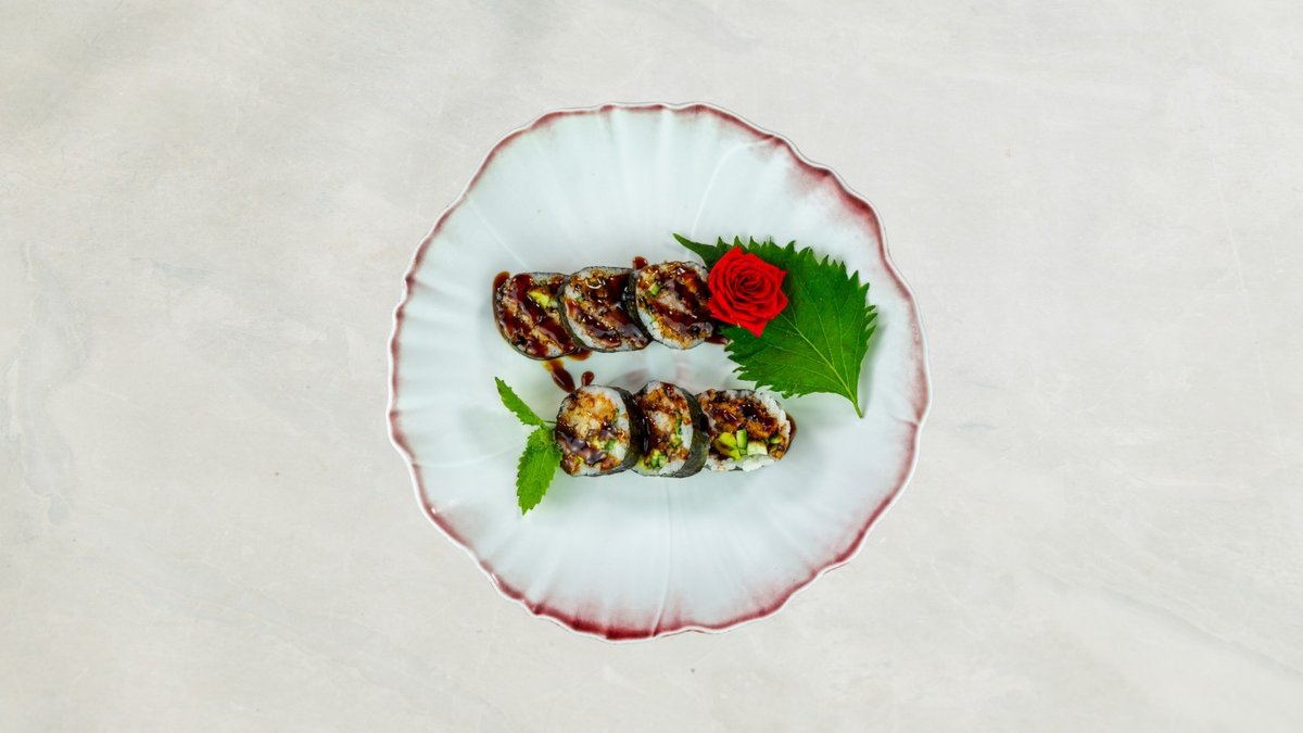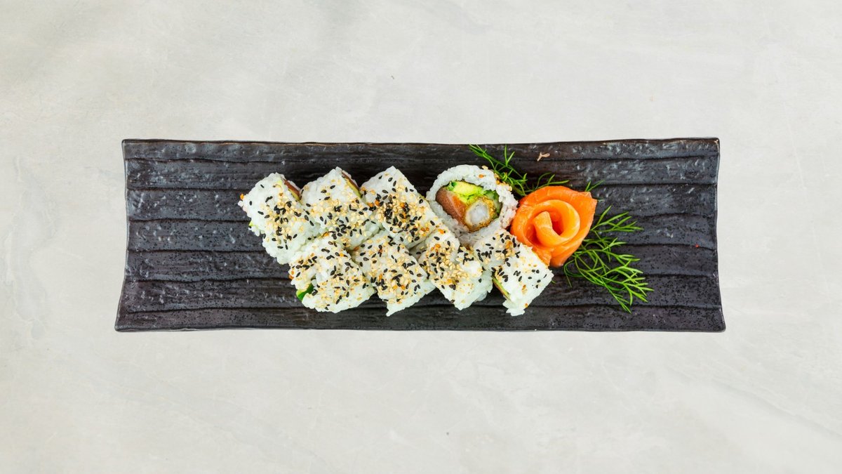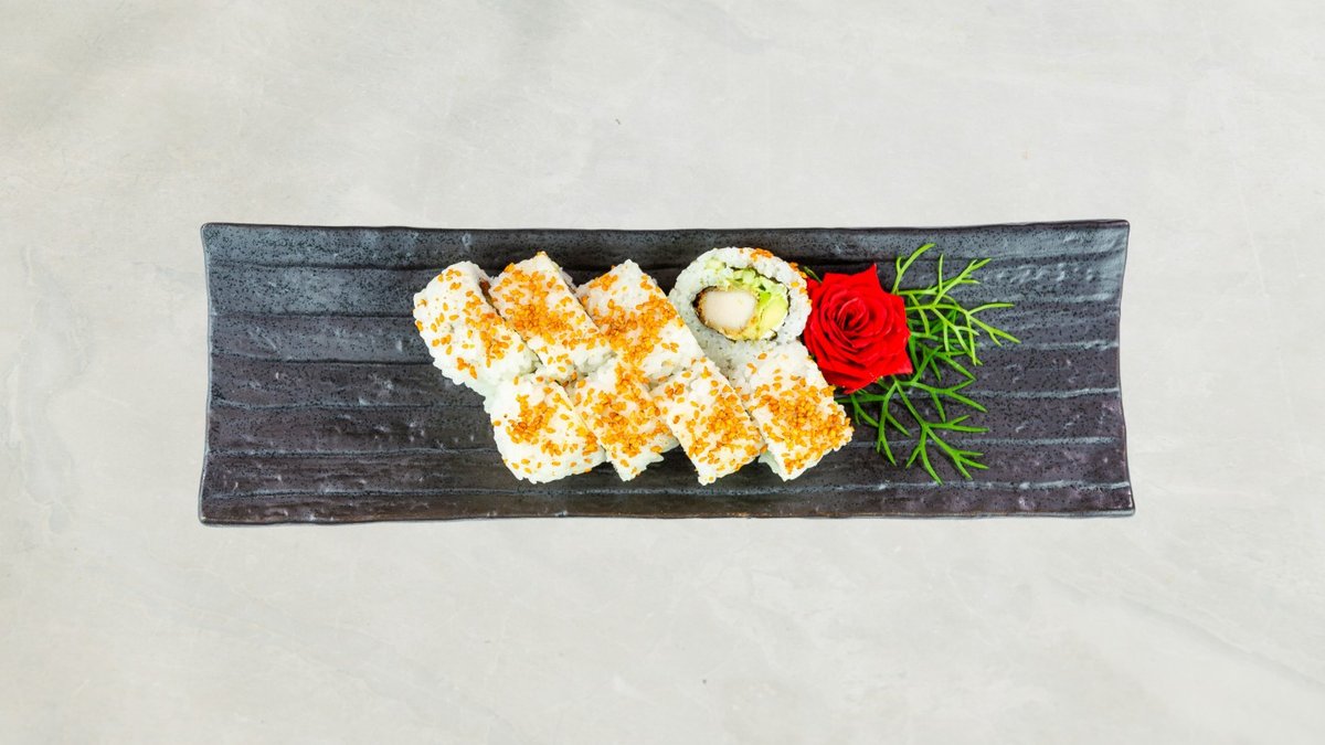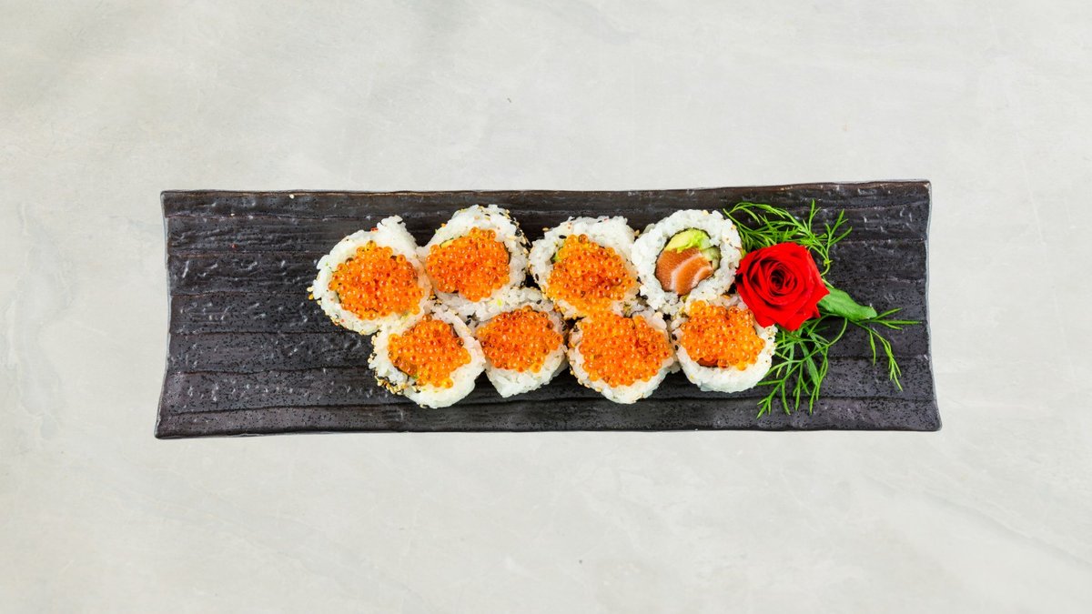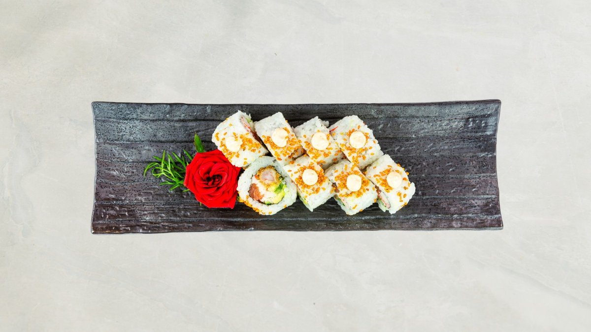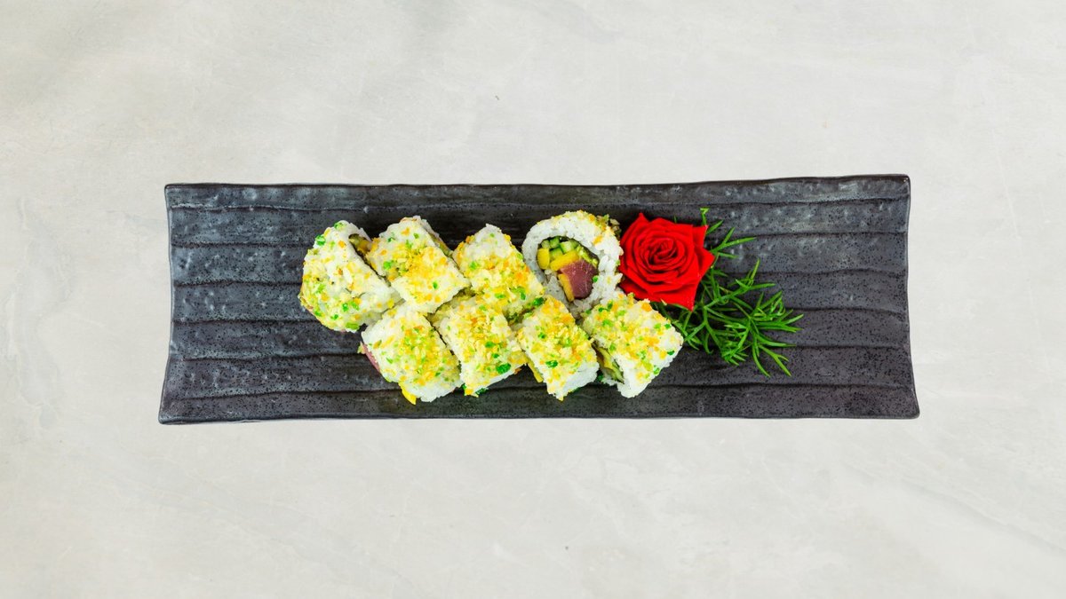 Uramaki: 8 stk Crispy Ebi og 8 stk Crispy kylling Kaburimaki: 8 stk Flamberet Dragon Serveres med rejechips, tangsalat og 33 cl sodavand.