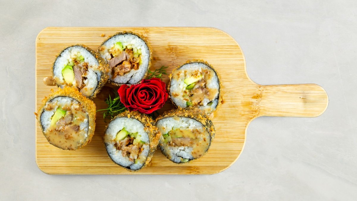 Alle er med sushiris, avocado og agurk. Serveres i 6 stk.