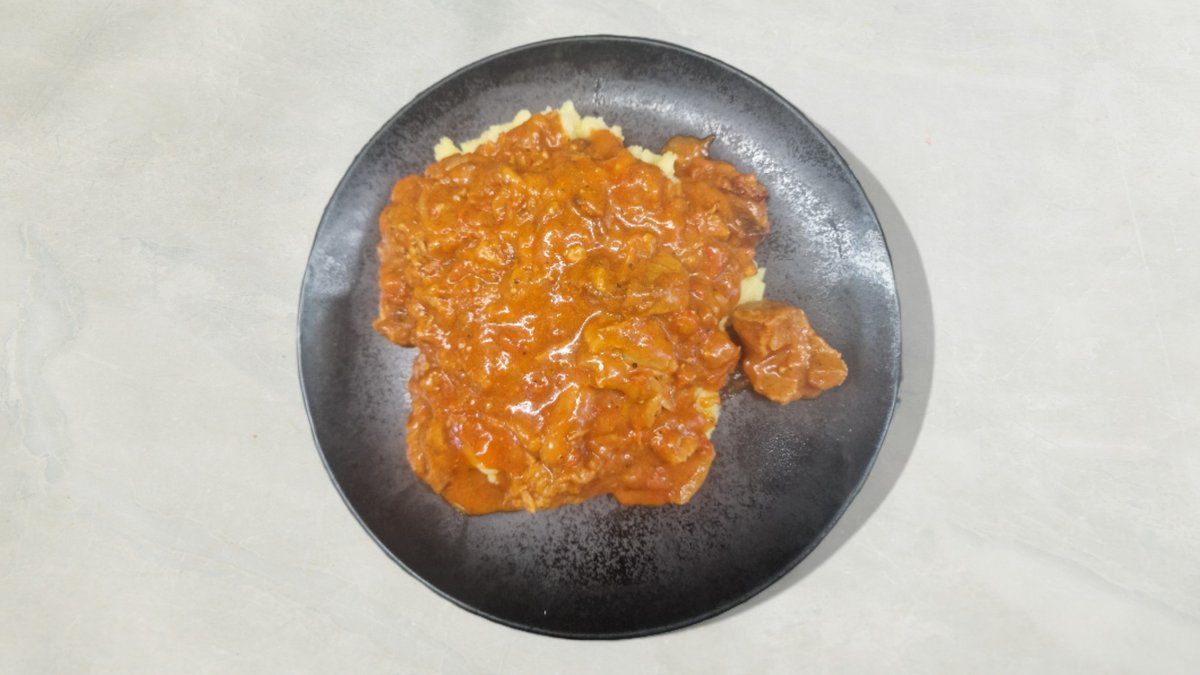 Gryderet med grisemørbrad, bacon og cocktailpølser i en cremet paprikasovs. Serveres med valgfrit tilbehør.