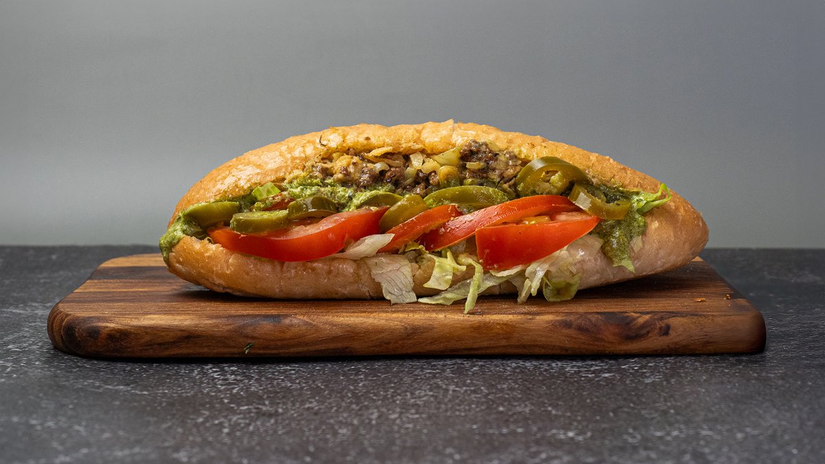 New York Klassiker "Chopped Cheese Sandwich". Oplev vores signatur fra FrAaderen: Kokken hakker oksekød, løg, cheddar- og goudaost, jalapenos, adobokrydderi sammen på stegepladen. Serveres i Tyrkisk brød med frisk salat, tomat, jalapeños, samt kokkens specielle sauce. Serveres med valgfri 0,25 l Frem sodavand.