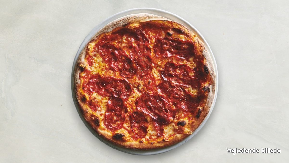 Tomatsauce, ost, mozzarella, krydret okse salami, svampe, løg, hvidløg og oregano.
