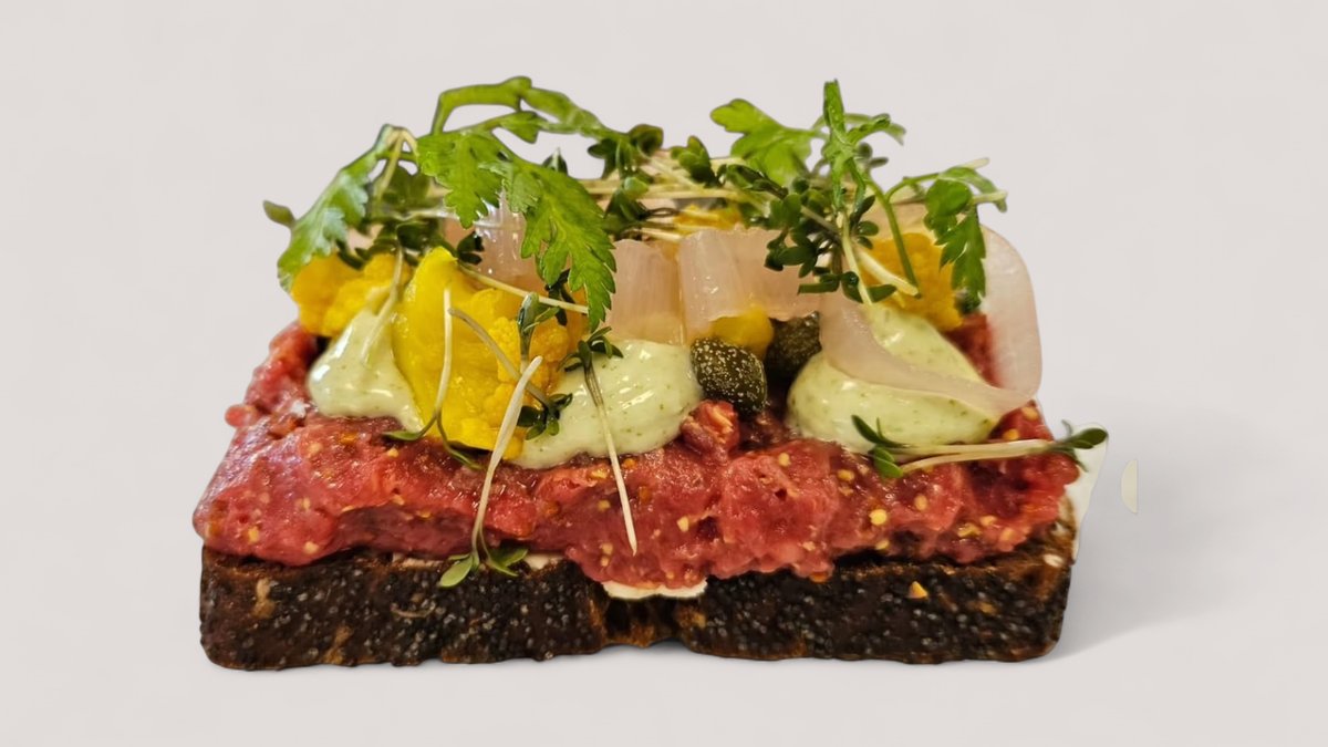Rå og vovet. Estragonmayo, rødbede, kapers, syltet rødløg, sprøde jordskokker.