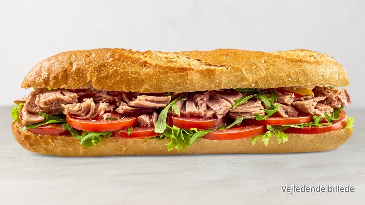 Frisk salat, tun, majs, tomatskiver, agurk og dressing. Serveres med brød.