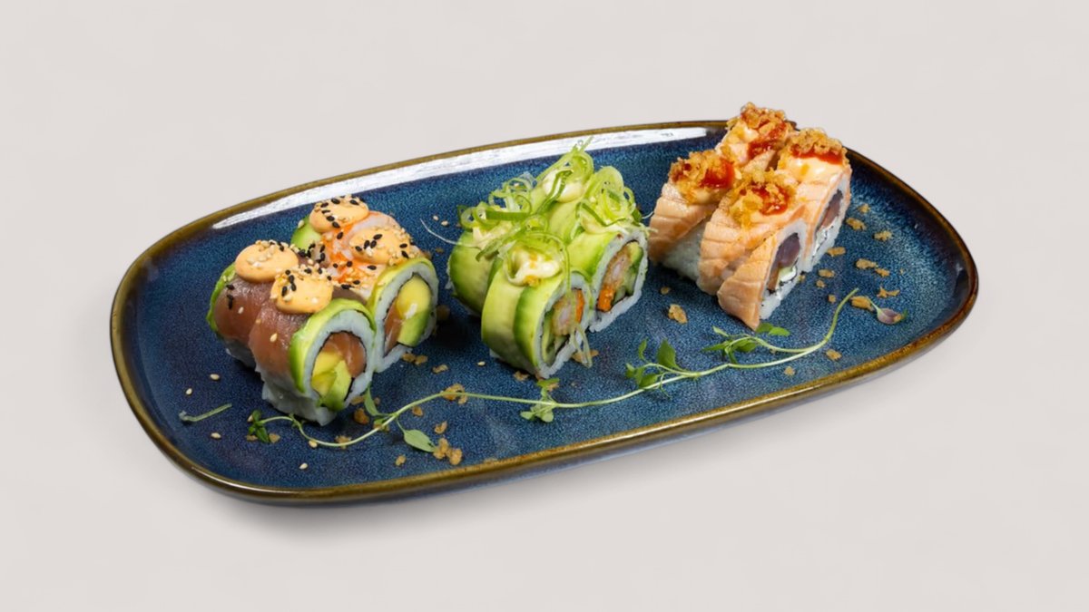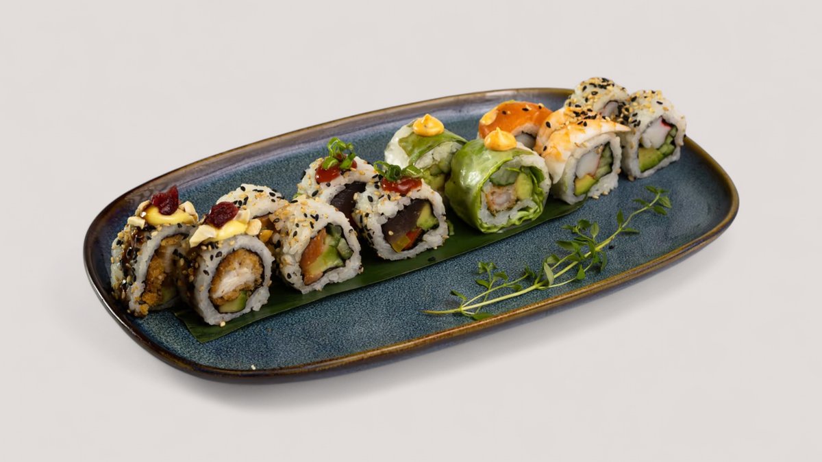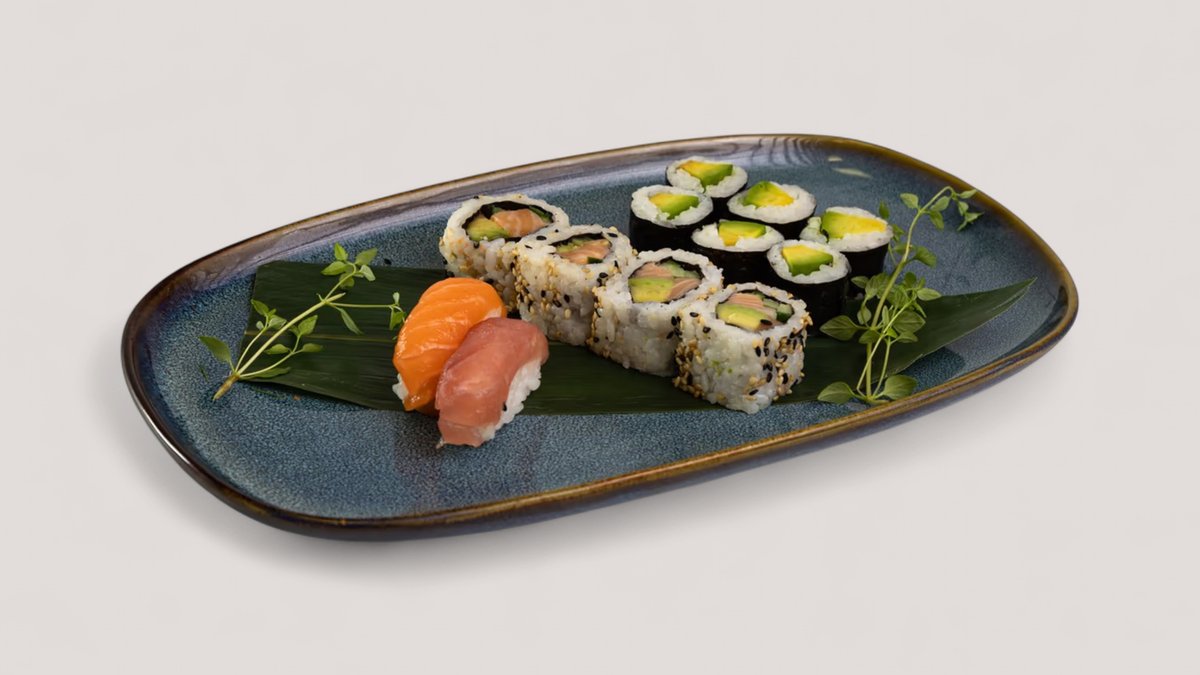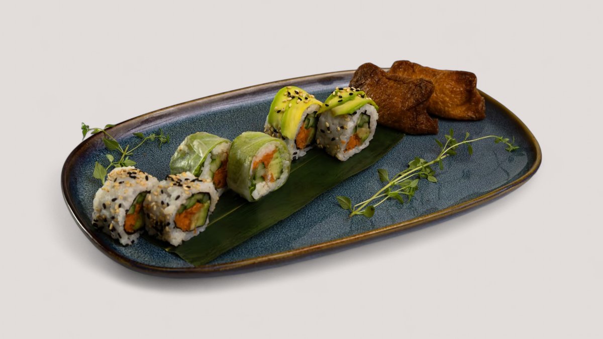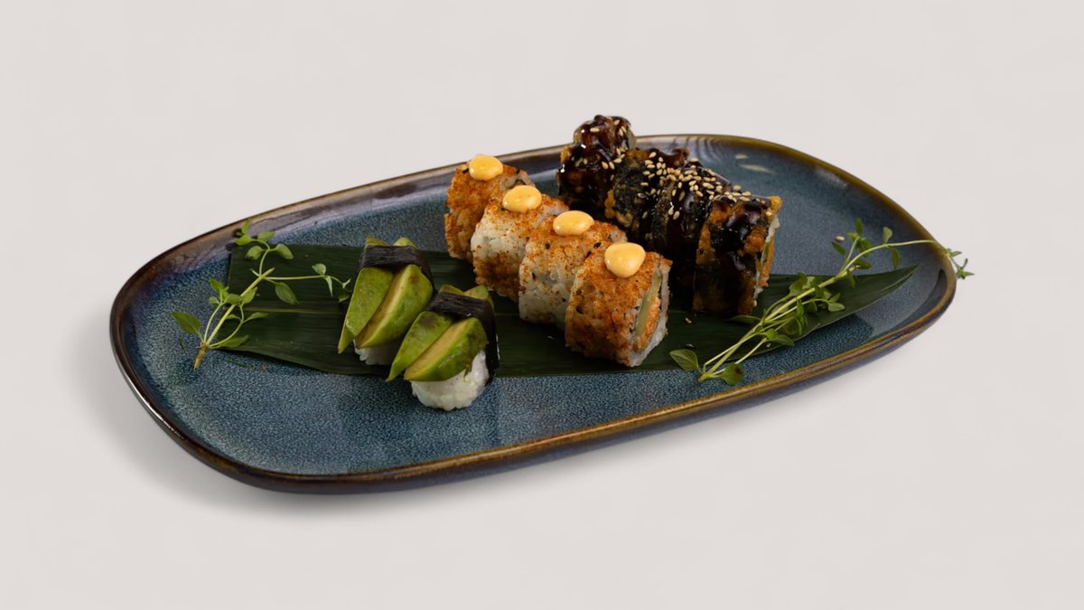 Nigiri: 2 x Avocado Uramaki: 4 x Spicy Veggie Roll 4 x Fried Veggie Roll.