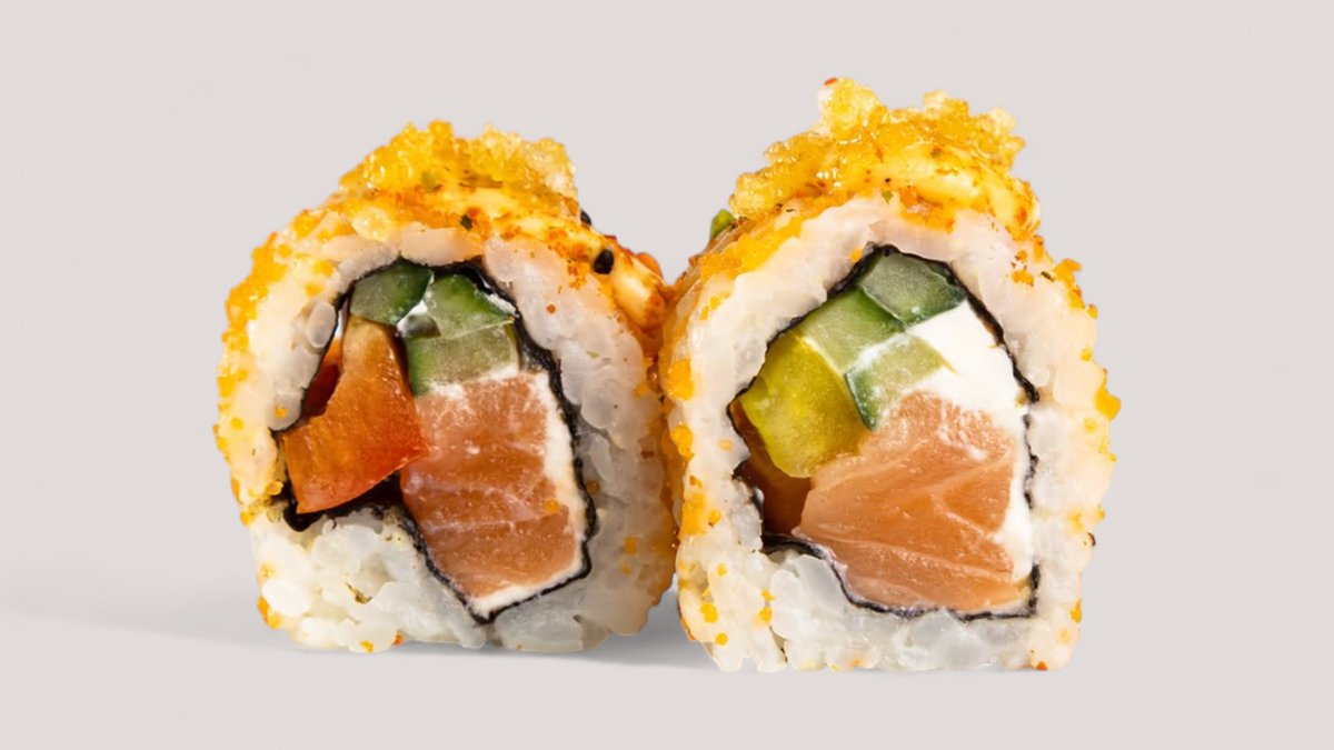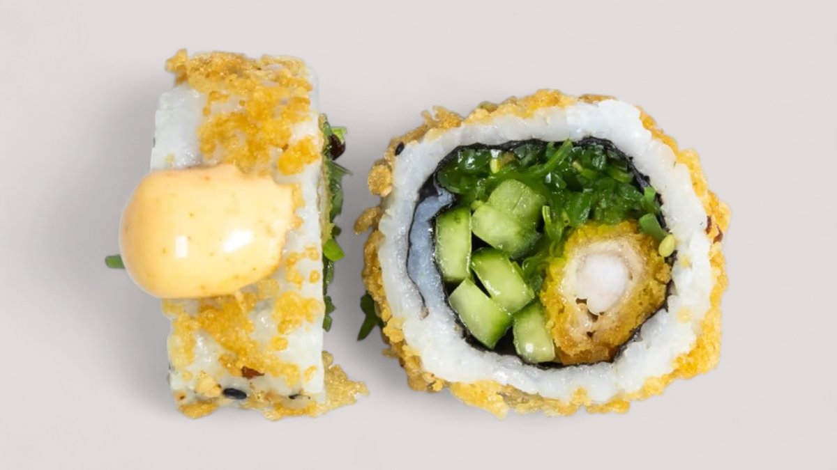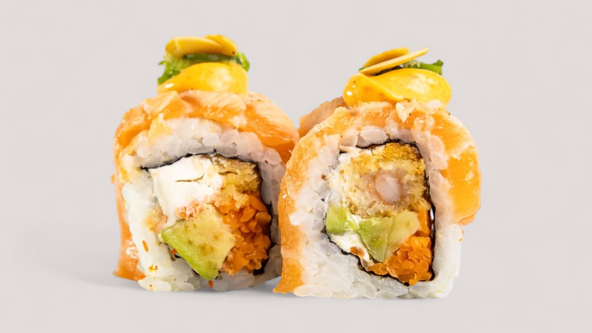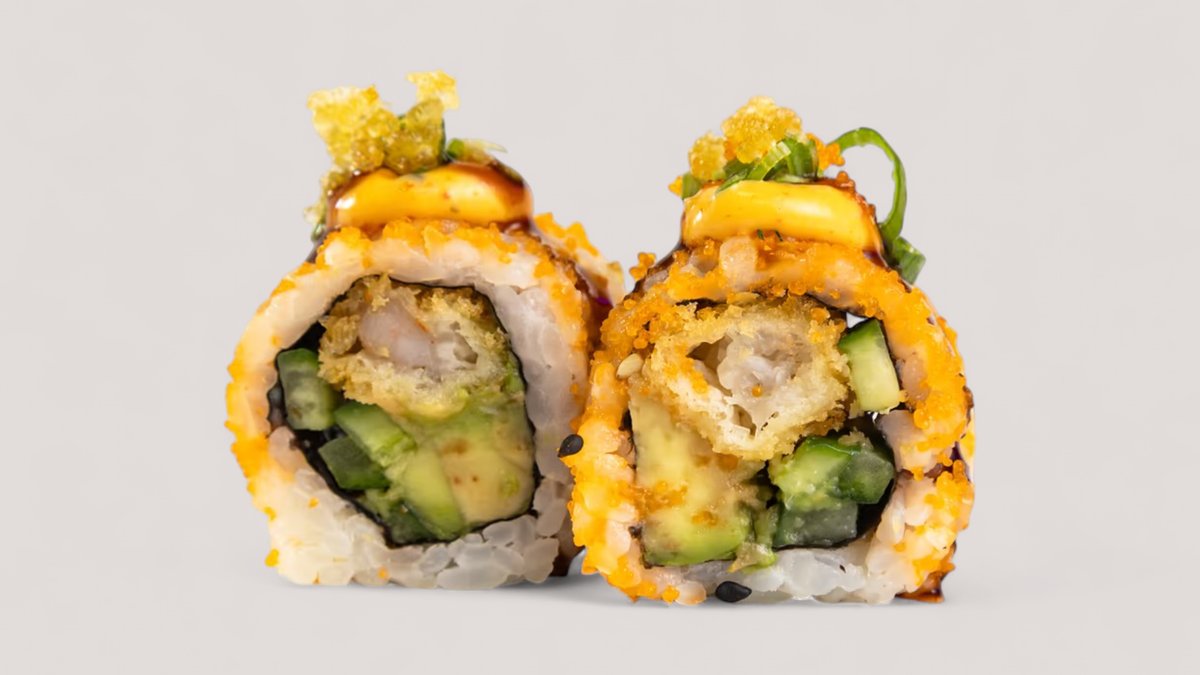 Tempurareje med avocado, toppet med tobiko, chilimayo, teriyakisauce, forårsløg og tempura crunch.