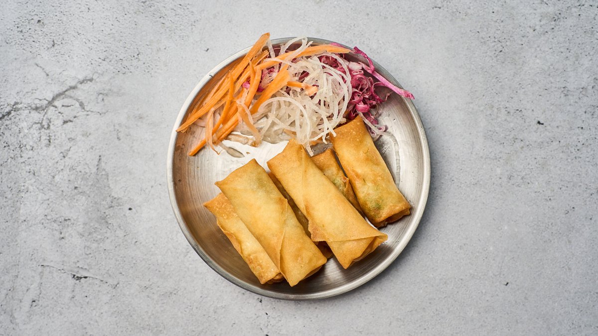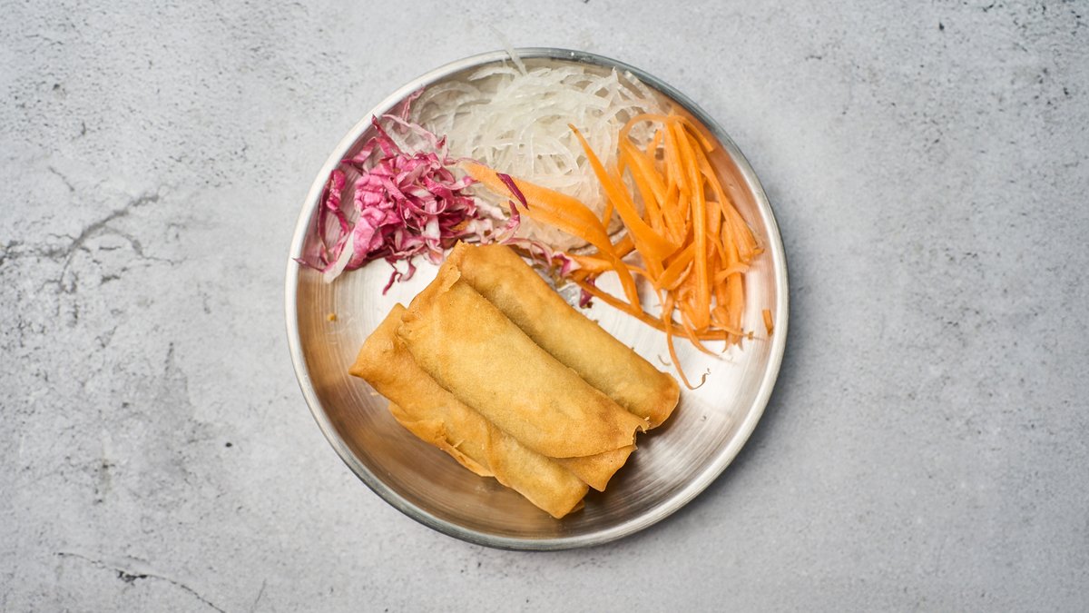 Forårsrulle med fyld af grøntsager.