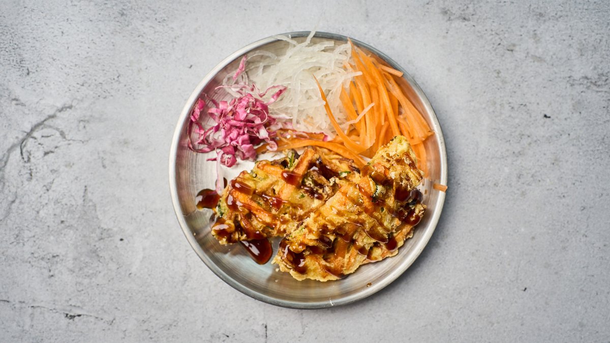 Tyndtskårne grøntsager friteret og blandet i en dej.